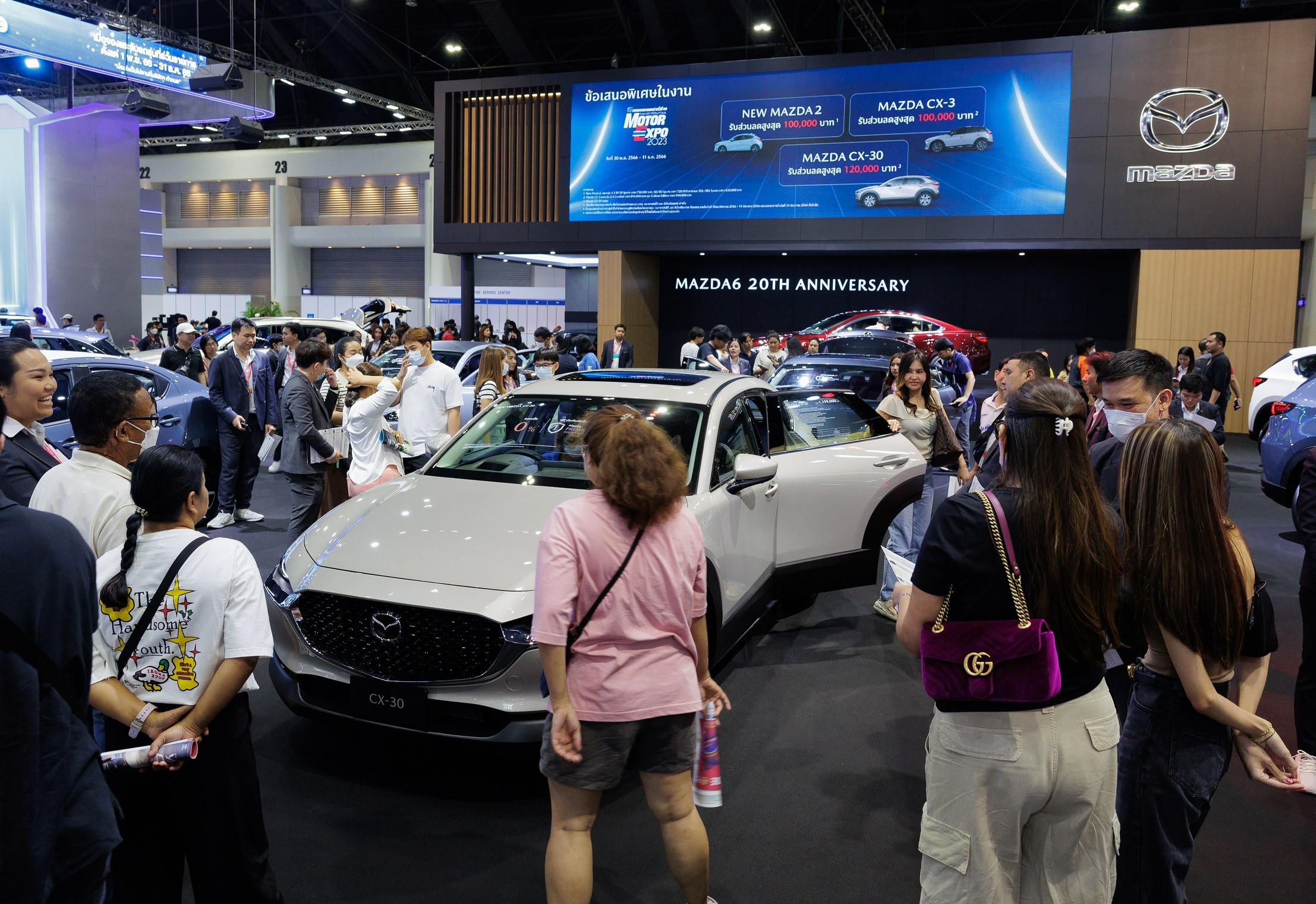 มาสด้าเผยกระแสตอบรับรถยนต์มาสด้าในงานมอเตอร์ เอ็กซ์โป 2023 มาแรง ผ่านมาครึ่งทาง กวาดยอดจองไปแล้วกว่า 934 คัน หลังจัดให้ลูกค้าได้สัมผัสรถยนต์ทุกรุ่นอย่างใกล้ชิด โดย มาสด้า2 ยังคงครองความนิยมจากลูกค้ามากที่สุดถึง 38% ตามมาด้วย มาสด้า CX-30 สัดส่วน 34% พร้อมเดินหน้ากระตุ้นกำลังซื้อด้วยแคมเปญสุดคุ้มครั้งเดียวส่งท้ายปี ด้วยโปรแกรมพิเศษเพื่อเอาใจใส่ดูแลลูกค้าอย่างเต็มที่แบบไม่มีค่าใช้จ่าย ทั้ง Mazda Care ทั้ง MUS ดูแลฟรีตลอด 5 ปี เงินดาวน์ต่ำ ดอกเบี้ยต่ำสุด 0% ผ่อนนานสูงสุด 84 เดือน ฟรีประกันชั้นหนึ่ง พร้อมของที่ระลึกอีกเพียบ ส่งผลให้ลูกค้าหลั่งไหลเข้ามาชมที่บูธมาสด้าอย่างไม่ขาดสาย