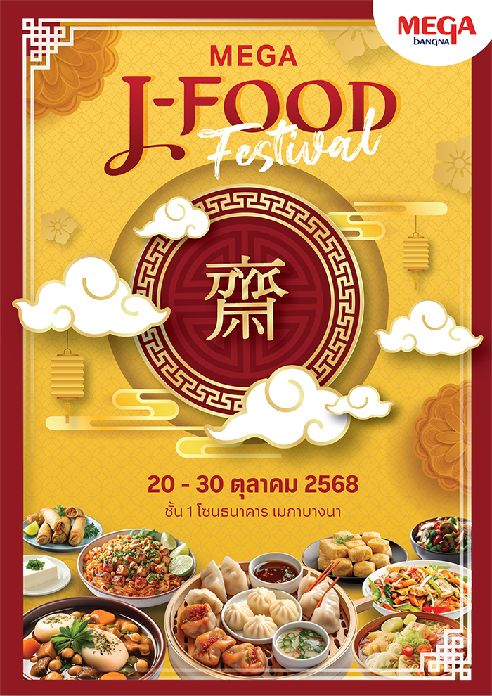 เมกาบางนา ชวนอิ่มบุญ อิ่มใจ อิ่มอร่อย ต้อนรับเทศกาลกินเจ ในงาน “MEGA J-FOOD FESTIVAL” วันที่ 20–30 ต.ค. 68 ณ ชั้น 1 โซนธนาคาร ศูนย์การค้าเมกาบางนา