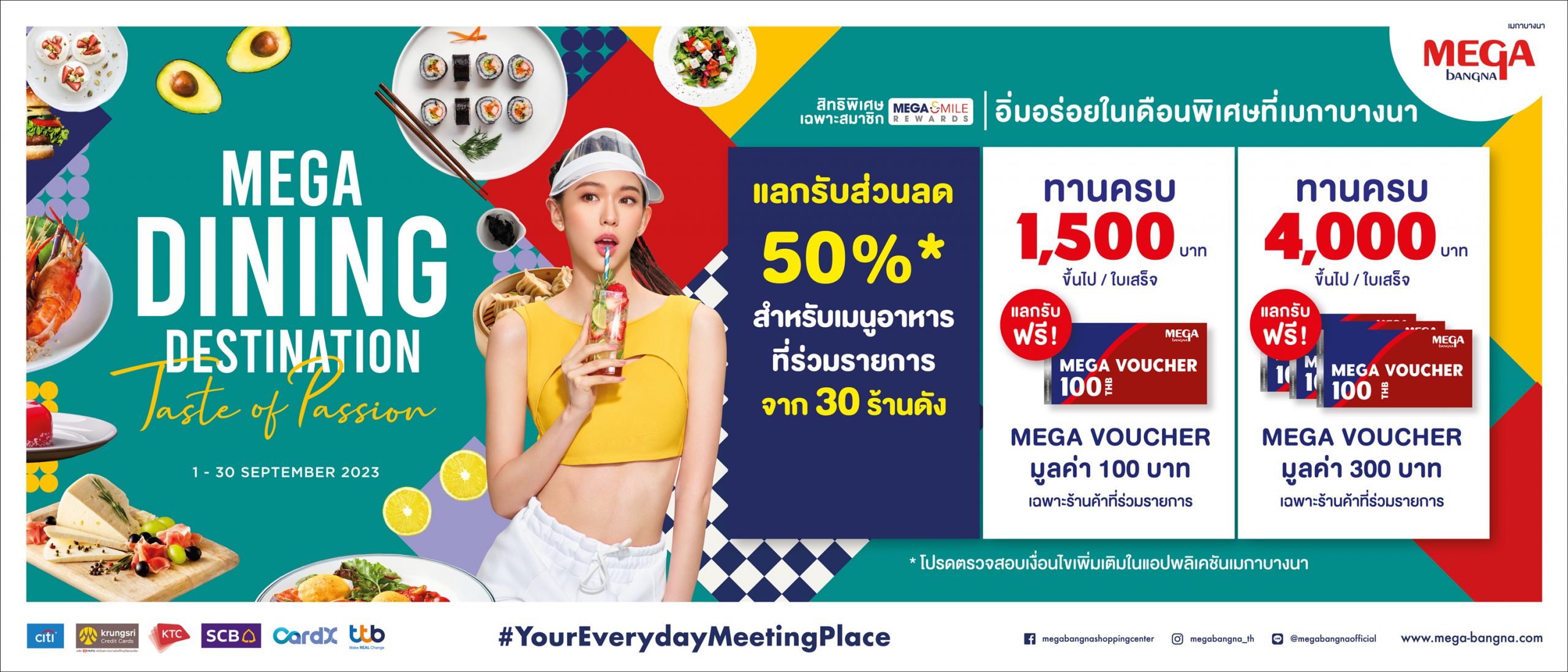 ศูนย์การค้าเมกาบางนา พร้อมเสิร์ฟความอร่อยแบบไม่รู้จบ ตอกย้ำความเป็น FOOD DESTINATION ของกรุงเทพตะวันออกที่มีร้านอาหารทั้งไทย และนานาชาติมากกว่า 165 ร้าน พร้อมส่วนลดเมนูพิเศษถึง 50% จาก 30 ร้านที่ร่วมรายการ กับแคมเปญ MEGA DINING DESTINATION : TASTE OF PASSION