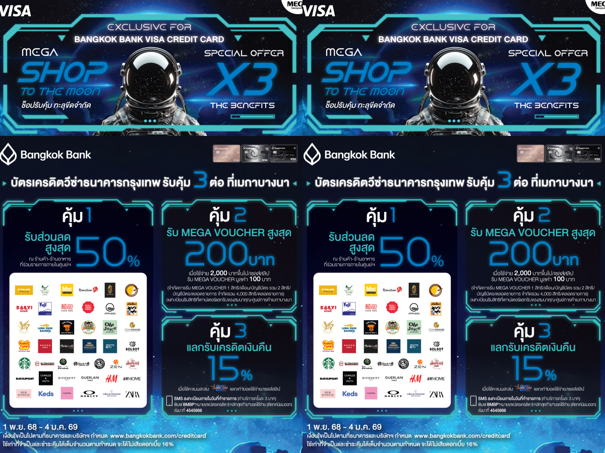 เมกาบางนา ร่วมกับ บัตรเครดิตวีซ่าแบงก์กรุงเทพ ส่งแคมเปญ “MEGA SHOP TO THE MOON”มอบสิทธิพิเศษถึง 3 ต่อสุดคุ้ม ระหว่างวันที่ 1 พ.ย. 68–4 ม.ค. 69
