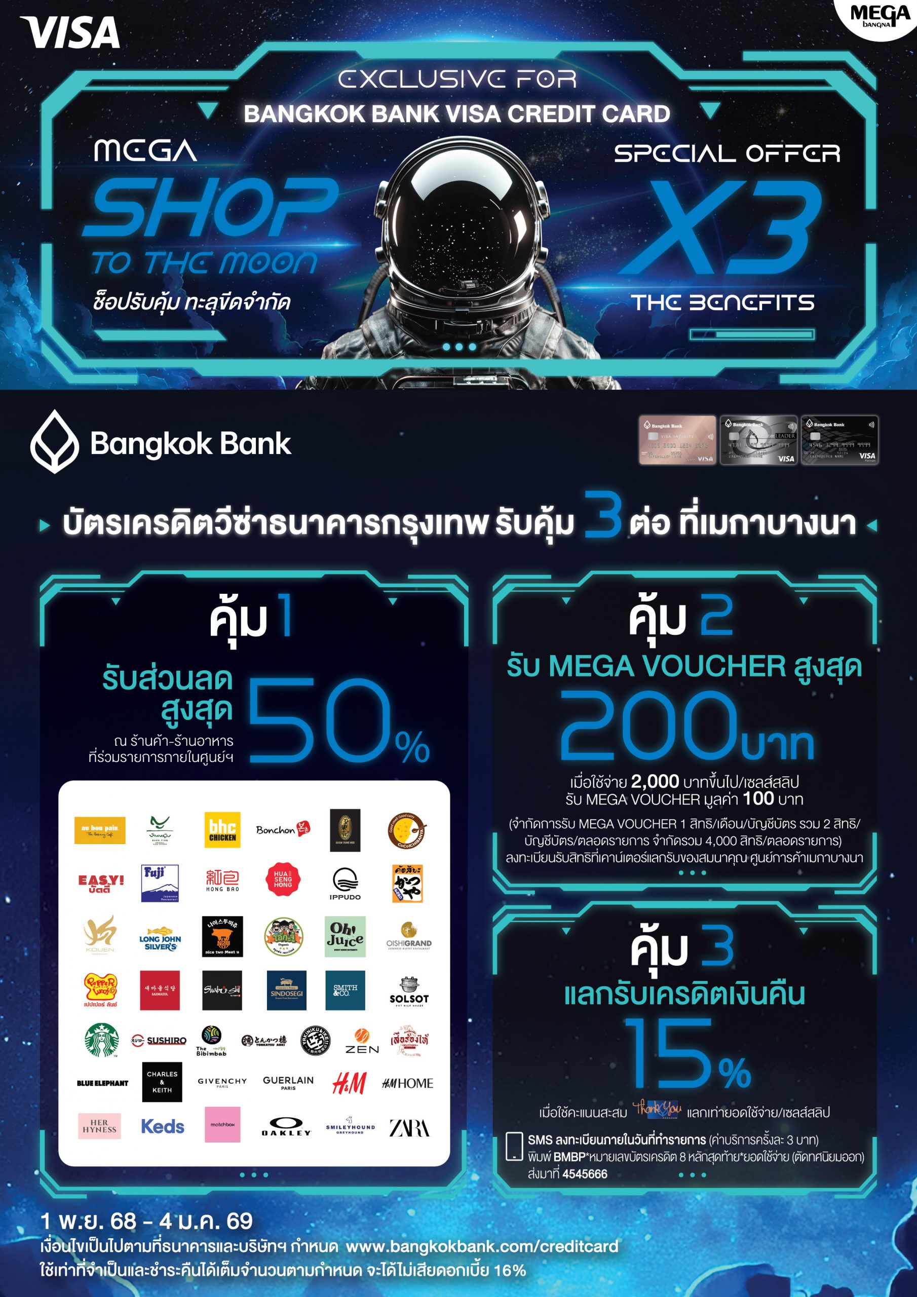สิทธิพิเศษเฉพาะผู้ถือบัตรเครดิตวีซ่าธนาคารกรุงเทพรับ 3 คุ้มสุดพิเศษเอ็กซ์คลูซีฟที่ เมกาบางนา