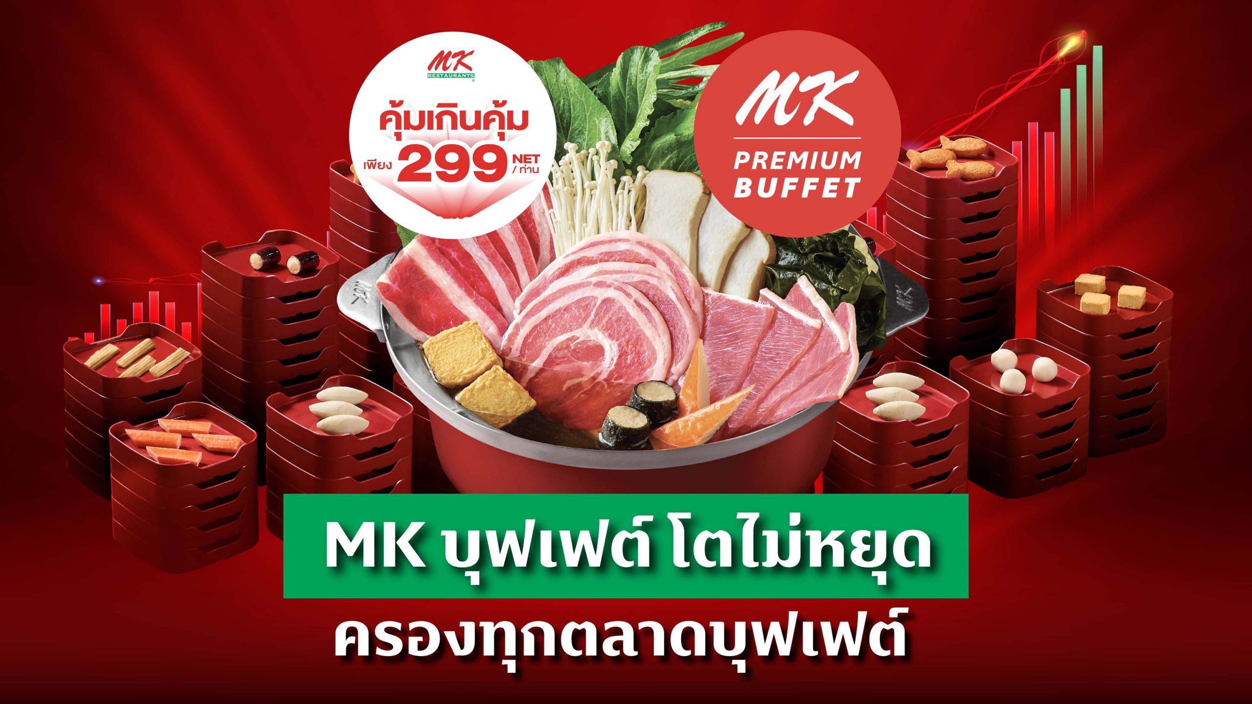 MK Restaurants เผยความสำเร็จของโมเดลบุฟเฟต์ที่ได้รับการตอบรับอย่างล้นหลามจากผู้บริโภคทั่วประเทศ หลังเปิดให้บริการในหลายสาขา ทั้ง MK คุ้มเกินคุ้ม 299 บาท และ MK Premium Buffet 499, 699, 899 บาท ที่พึ่งเปิดให้บริการในเดือนกันยายนที่ผ่านมา เพื่อตอบโจทย์เทรนด์ “Value for Money” ของผู้บริโภคยุคใหม่ที่ต้องการความคุ้มค่าและประสบการณ์การรับประทานที่หลากหลาย