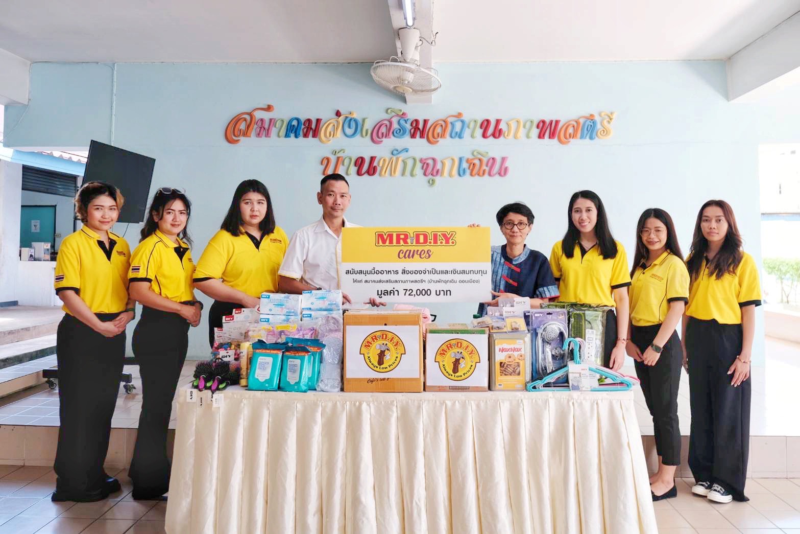มิสเตอร์. ดี.ไอ.วาย. ประเทศไทย นำโดย คุณอานุภาพ คงมาลัย รองประธานบริหารฝ่ายการตลาด พร้อมด้วยพนักงาน จัดกิจกรรมเพื่อสังคม ภายใต้โครงการ MR. D.I.Y. Cares ร่วมสนับสนุนมื้ออาหาร สิ่งของใช้จำเป็น จากร้านมิสเตอร์. ดี.ไอ.วาย. และเงินสมทบทุน รวมมูลค่ากว่า 72,000 บาท แก่สมาคมส่งเสริมสถานภาพสตรีฯ บ้านพักฉุกเฉิน ดอนเมือง ตลอดเดือนสิงหาคม 2566 โดยมี คุณอุษา เลิศศรีสันทัด ผู้อำนวยการสมาคมส่งเสริมสถานภาพสตรีฯ เป็นผู้รับมอบ