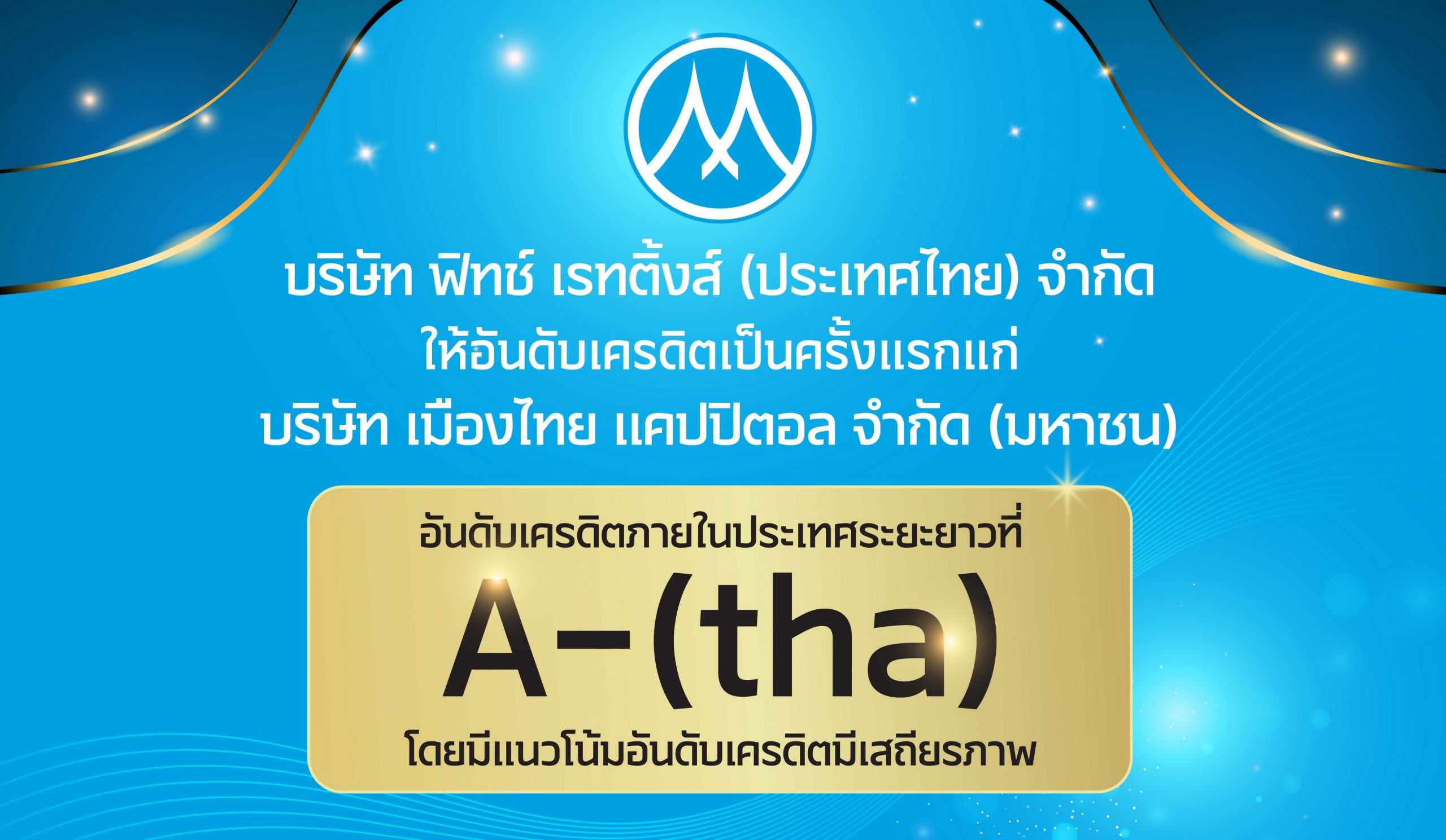บมจ. เมืองไทย แคปปิตอล สุดสตรอง! ฟิทช์ เรทติ้งส์จัดอันดับเครดิตภายในประเทศระยะยาวที่ ‘A-(tha)’ โดยมีแนวโน้มอันดับเครดิตมีเสถียรภาพ สะท้อนถึงความเป็นผู้นำธุรกิจสินเชื่อทะเบียนรถยนต์ที่แข็งแกร่ง และเป็นมาตรฐานสากล โดยมีสาขามากที่สุดถึง 7,980 สาขา บริหารจัดการคุณภาพสินทรัพย์ที่ทำได้ตามเป้าหมาย และ ผลการดำเนินงานทางการเงินที่น่าพอใจ รวมทั้งมุ่งเน้นการสร้างโอกาสการทางการเงินแก่ทุกคนในสังคม พร้อมควบคู่กับการดำเนินธุรกิจอย่างยั่งยืน