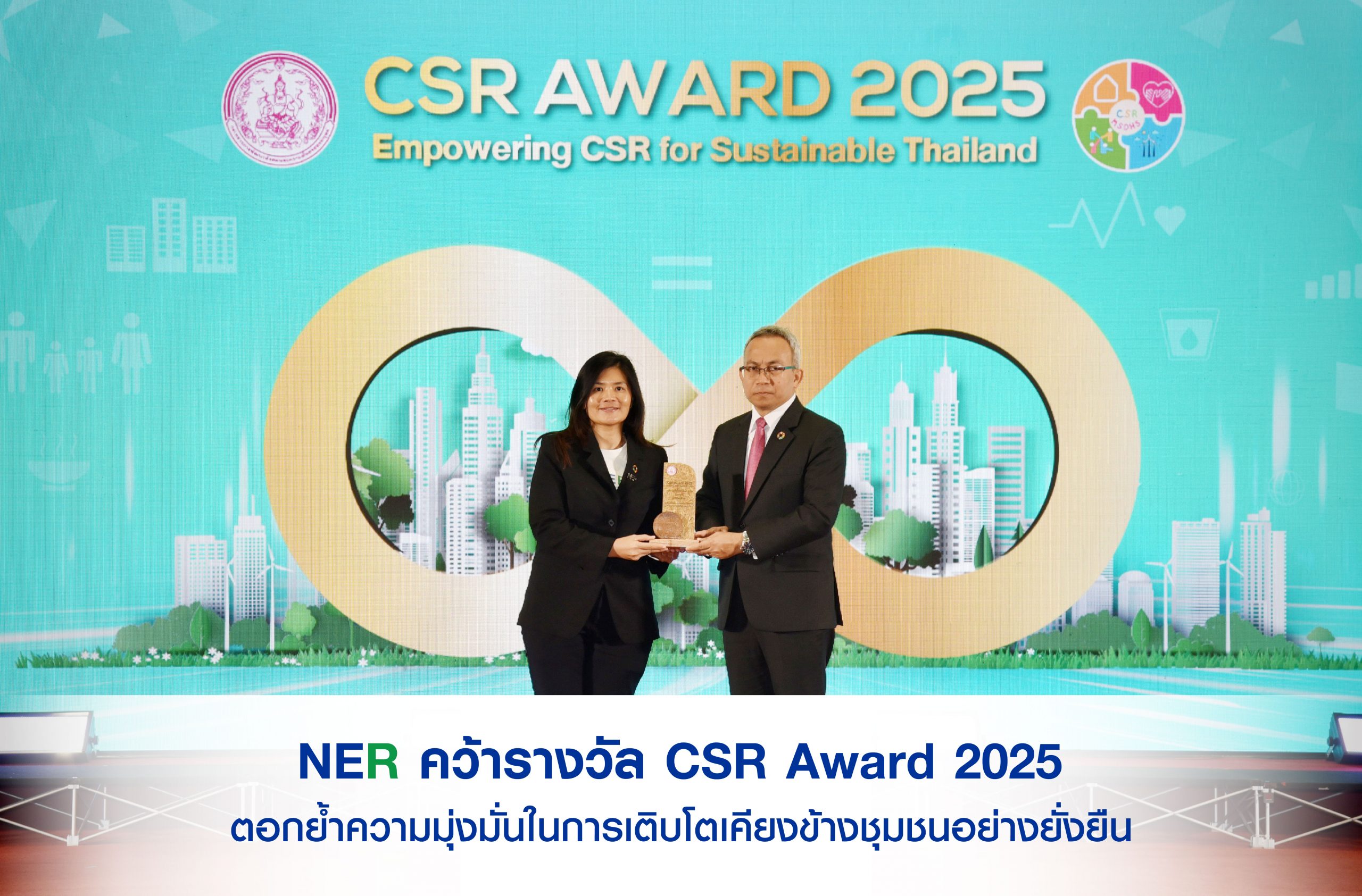 พิธีมอบรางวัล CSR Award 2025 โดยมี นางสาวปาร์ย อรรถพิสาล รองประธานเจ้าหน้าที่บริหารสายงานพัฒนาธุรกิจ บริษัท นอร์ทอีส รับเบอร์ จำกัด (มหาชน) หรือ NER เป็นตัวแทนรับมอบจาก นายอนุกูล ปีดแก้ว ปลัดกระทรวงการพัฒนาสังคมและความมั่นคงของมนุษย์ (พม.) เป็นผู้มอบรางวัล ณ โรงแรมปรินซ์ พาเลซ กรุงเทพฯ เพื่อยกย่ององค์กรที่มีความโดดเด่นด้านการดำเนินกิจกรรมเพื่อสังคมและชุมชน