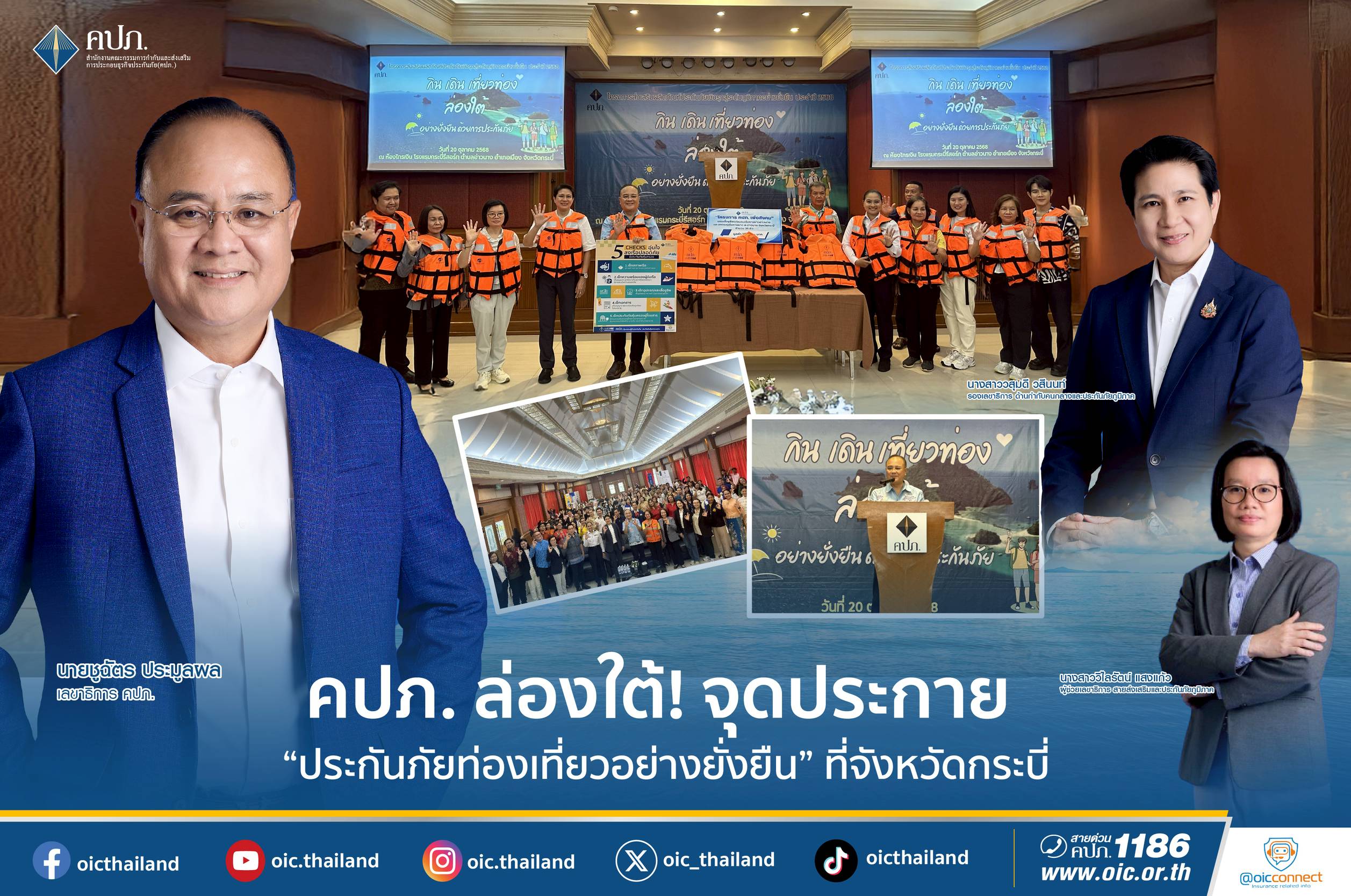 สำนักงานคณะกรรมการกำกับและส่งเสริมการประกอบธุรกิจประกันภัย (คปภ.) นำโดย นายชูฉัตร ประมูลผล เลขาธิการ คปภ. ลงพื้นที่จังหวัดกระบี่ เปิดโครงการส่งเสริมประกันภัยเชิงรุก ภายใต้แนวคิด “กิน เดิน เที่ยวท่อง ล่องใต้อย่างยั่งยืน ด้วยการประกันภัย” ณ โรงแรมกระบี่ รีสอร์ท ตำบลอ่าวนาง อำเภอเมือง จังหวัดกระบี่