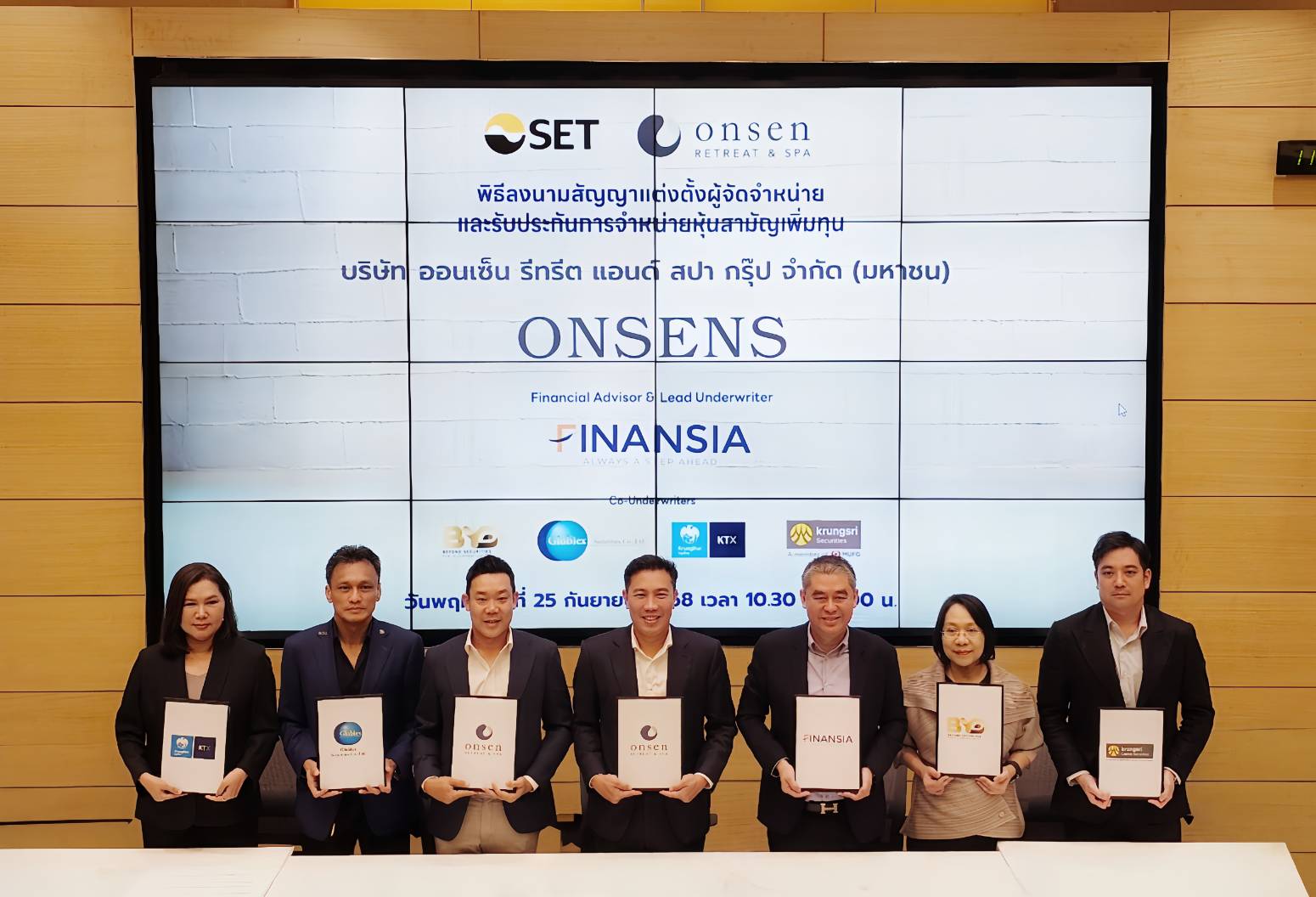 “ONSENS” เคาะราคาขายหุ้นไอพีโอ 2.05 บาท เปิดจองซื้อระหว่างวันที่ 29-30 ก.ย. และ 1 ต.ค. นี้ คาดว่าหุ้นจะเข้าเทรดในหลักทรัพย์ในประเทศไทย 7 ต.ค. นี้ มั่นใจนักลงทุนให้การตอบรับคึกคัก ตอกย้ำการเป็นผู้นำออนเซ็นและสปาครบวงจร เล็งระดมทุนสร้าง Social Wellness Space และขยายแบรนด์พอร์ตโฟลิโอหนุนการเติบโตในระยะยาว พร้อมแต่งตั้งบล. ฟินันเซีย ไซรัส เป็นผู้จัดการการจัดจำหน่ายและรับประกันการจำหน่ายในการเสนอขายหุ้นสามัญเพิ่มทุน จำนวน 80 ล้านหุ้น
