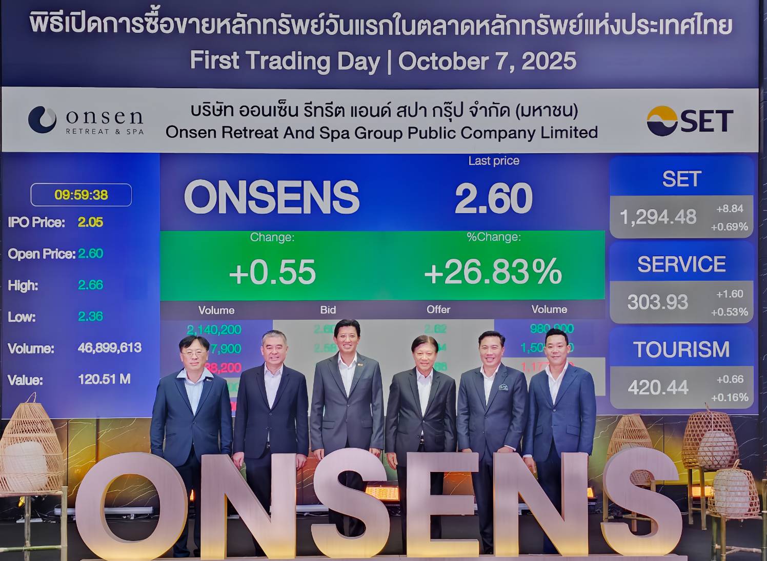 ONSENS เปิดซื้อขายวันแรกที่ราคา 2.60 บาท เหนือจอง 26.83% ขึ้นแท่นหุ้นเมกะเทรนด์สุขภาพวางเป้า-ขยาย 8 สาขา ใน 3 ปี