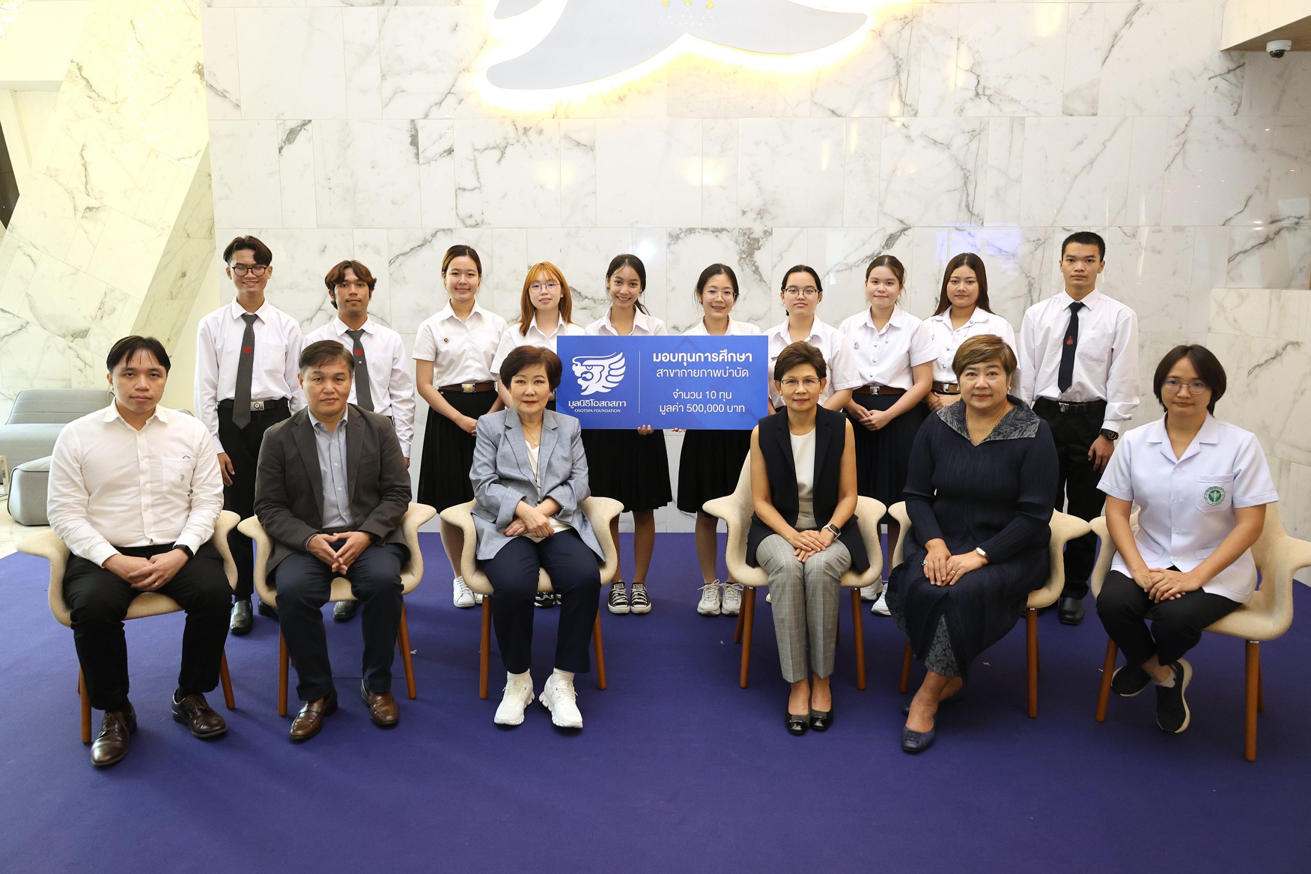 มูลนิธิโอสถสภาจัดงานมอบทุนการศึกษาด้านกายภาพบำบัดให้แก่ 5 สถาบันของรัฐ ได้แก่ จุฬาลงกรณ์มหาวิทยาลัย มหาวิทยาลัยธรรมศาสตร์ มหาวิทยาลัยมหิดล มหาวิทยาลัยศรีนครินทรวิโรฒและมหาวิทยาลัยขอนแก่น รวมจำนวน 10 ทุน มูลค่ากว่า 500,000 บาท เพื่อส่งเสริมและพัฒนาบุคลากรทางการแพทย์ด้านกายภาพบำบัด โดยมีคุณกรรณิกา ชลิตอาภรณ์ รองประธานมูลนิธิโอสถสภา และ คุณวรรณิภา ภักดีบุตร ประธานเจ้าหน้าที่บริหาร บริษัท โอสถสภา จำกัด (มหาชน) เป็นผู้มอบทุน