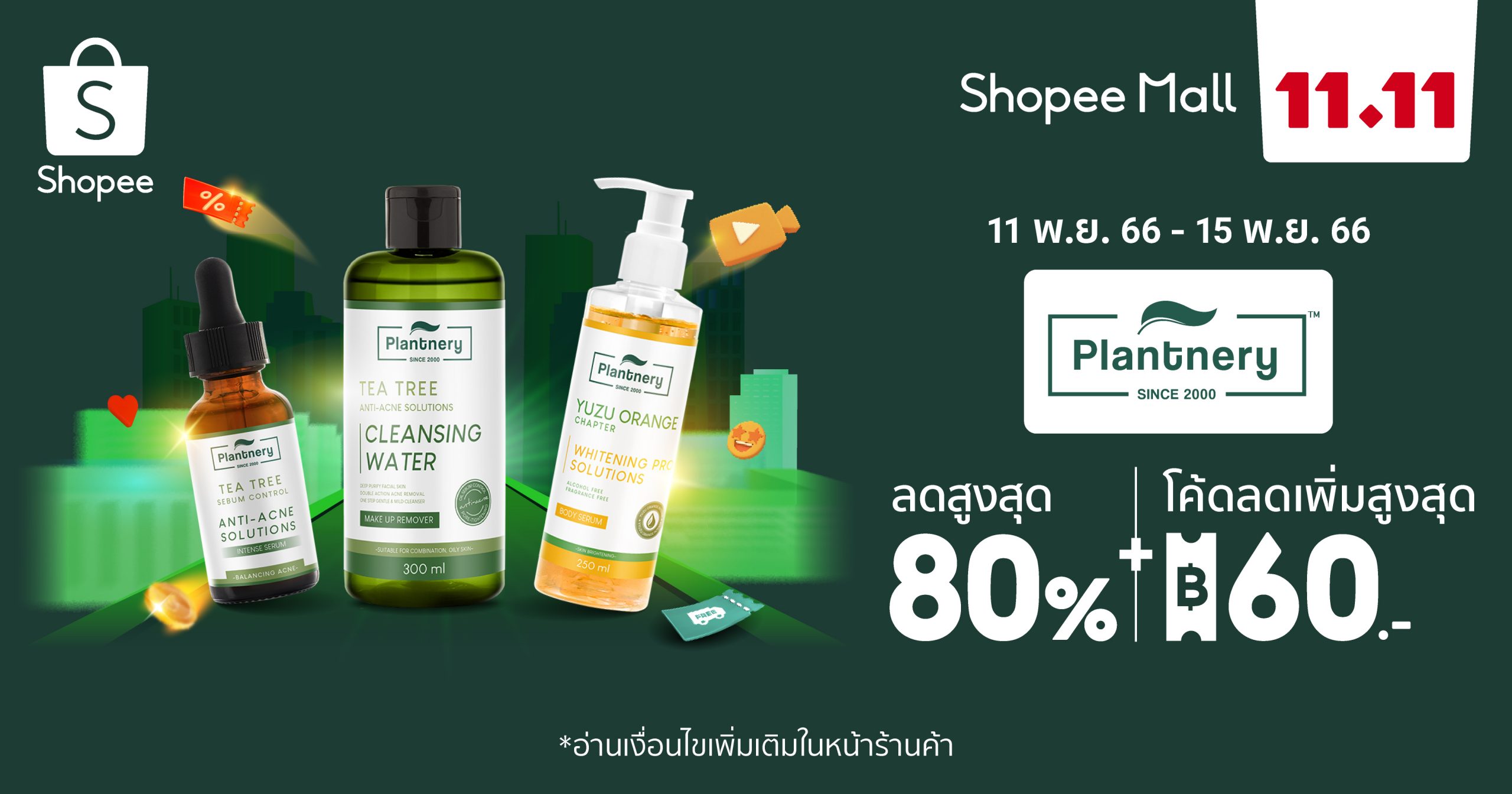 พบกับความคุ้มค่าที่ห้ามพลาดแบบจัดเต็มกับ เทศกาลช้อปปิ้งส่งท้าย Shopee 11.11 ลด ใหญ่ มาก “มีครบถูกชัวร์ ซื้อเลยที่ช้อปปี้” อาทิ โปรโมชั่นโค้ดส่วนลด 2,000 บาท โค้ดลดเพิ่ม 50% , Flash Sale และ Shopee Live พิเศษ! เปิดประสบการณ์ความคุ้มค่าสูงสุดในการช้อป ก่อนการชำระเงิน ลูกค้าสามารถกดเก็บโค้ดของ Plantnery ได้ที่หน้าร้าน และโค้ดส่วนลดของช้อปปี้จากหน้าแคมเปญ ไม่ว่า จะเป็น โค้ดส่วนลด โค้ดส่งฟรี หรือโค้ดรับ Shopee Coins คืน นอกจากนี้ลูกค้ายังสามารถใช้ Shopee Coins เป็นส่วนลดเพิ่มเติม โดย 1 Shopee Coin จะมีมูลค่าเท่ากับ 1 บาท พร้อมเพลิดเพลินกับสิทธิประโยชน์มากมาย เมื่อชำระผ่าน ShopeePay หรือเลือกผ่อนชำระง่ายๆแบบไม่ใช้บัตรด้วยบริการ SPayLater (โปรดศึกษาเงื่อนไขเพิ่มเติมได้ในหน้าเงื่อนไขการใช้โค้ด)