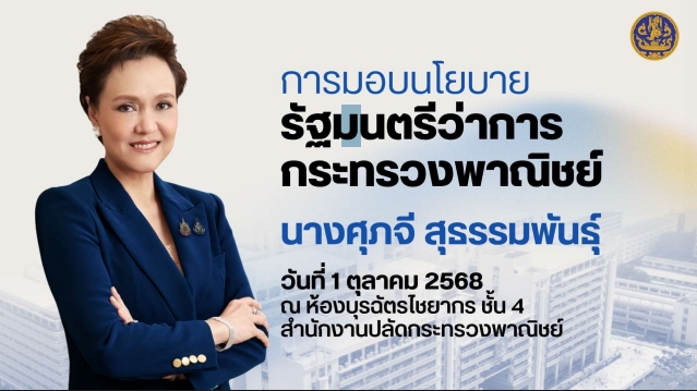 “กระทรวงพาณิชย์อายุ 105 ปีแล้ว และจะอยู่คู่ประเทศไทยต่อไปอีกยาวนาน สิ่งที่ดิฉันและทุกท่านร่วมกันขับเคลื่อนในวันนี้ ไม่ใช่เพียง Quick Win แต่คือการวางรากฐานที่มั่นคง โปร่งใส และยั่งยืน เพื่อประโยชน์สูงสุดของประเทศและพี่น้องประชาชน”นางศุภจี กล่าว