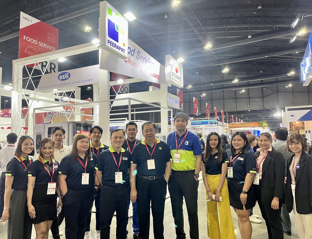 นายวีระพงค์ ลือสกุล (แถวหน้าที่ 5 จากซ้าย) ประธานเจ้าหน้าที่บริหาร นายอาวิน เต่าสุวรรณ (แถวหน้าที่ 5 จากขวา) ผู้จัดการแผนกธุรกิจฟู้ดเซอร์วิส บริษัท พีรพัฒน์ เทคโนโลยี จำกัด (มหาชน) หรือ PRAPAT และนายยงยุทธ จิรกาลวงศ์ (แถวหน้าที่ 4 จากซ้าย) กรรมการผู้จัดการ บริษัท ไทยสจ็วต เซอร์วิสเซ็ส จำกัด บริษัทย่อยของกลุ่มบริษัท พีรพัฒน์ เทคโนโลยี จำกัด (มหาชน) นำผลิตภัณฑ์เครื่องครัวที่ตอบโจทย์ทุกฟังก์ชันความต้องการใช้งานครัวแบบครบวงจร มาจัดแสดงและจำหน่ายภายในงาน THAIFEX – ANUGA ASIA 2023 งานแสดงสินค้าอาหารและเครื่องดื่มที่ยิ่งใหญ่และครบวงจรที่สุดแห่งเอเชีย