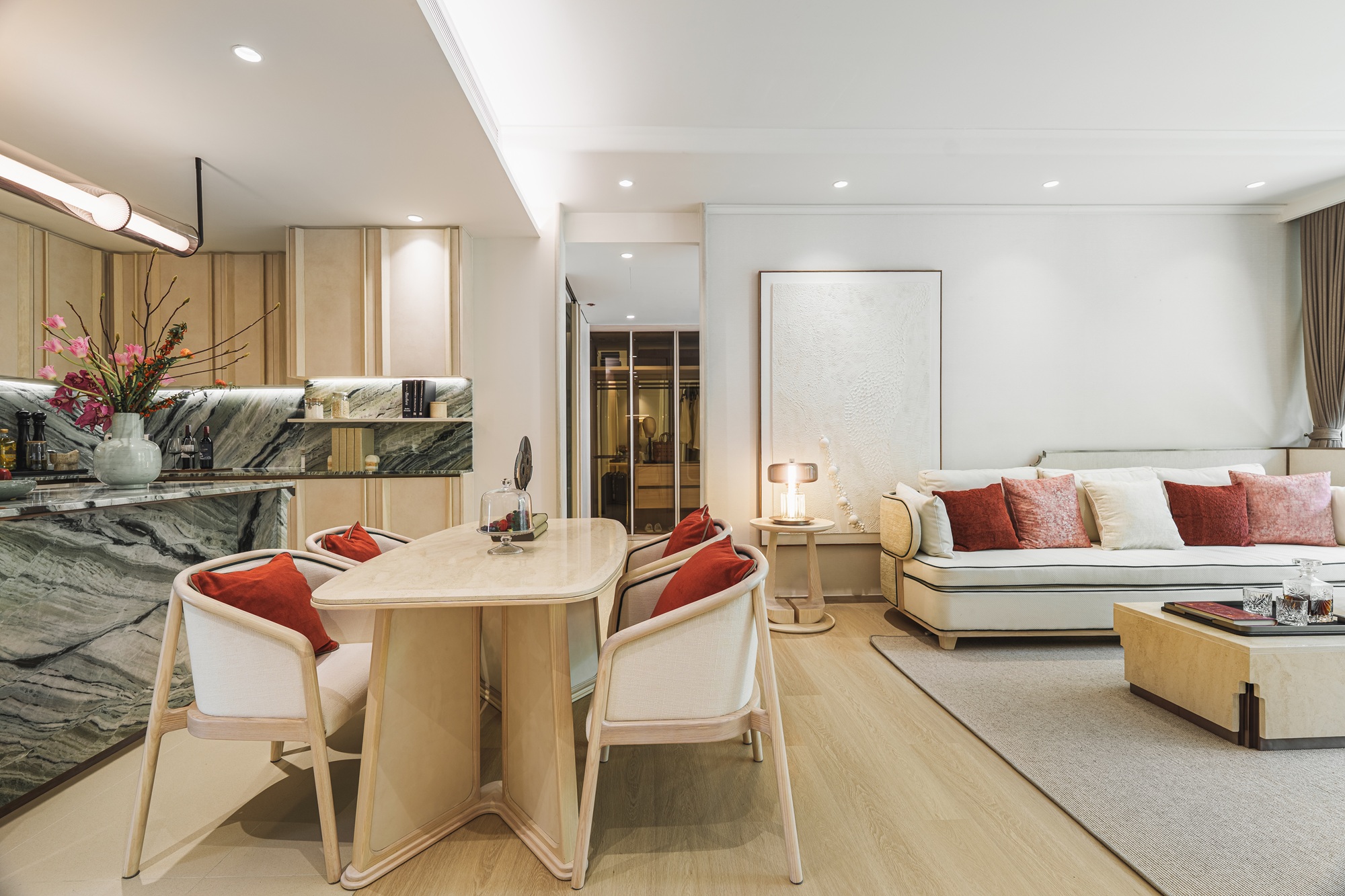 ไฮไลท์สำคัญของงานคือการเปิดโอกาสให้ผู้ที่สนใจสัมผัสห้องตัวอย่างจริง เพื่อดื่มด่ำกับรายละเอียดอันประณีตงดงามของการออกแบบตกแต่งภายใน ตลอดจนการคัดสรรอุปกรณ์เครื่องใช้ภายในบ้านระดับ Hi-end ทุกองค์ประกอบถูกจัดวางเพื่อมอบประสบการณ์การพักอาศัยที่เหนือระดับตามแนวคิด “สวรรค์บนดิน” สำหรับผู้ที่จะได้เป็นเจ้าของ โดยปัจจุบัน มีห้องทั้งหมด 5 แบบหลัก พื้นที่ใช้สอยเริ่มต้นที่ขนาด 59 ตร.ม. จนถึง Penthouse ขนาด 425 ตร.ม. โดยโครงการมีจำนวนจำกัดเพียง 111 ยูนิต เท่านั้น เพื่อความเป็นส่วนตัวสูงสุด พร้อมด้วยยูนิตหน้ากว้างขนาด 1 ถึง 5 ห้องนอน ในราคาเริ่มต้น 15 ล้านบาท