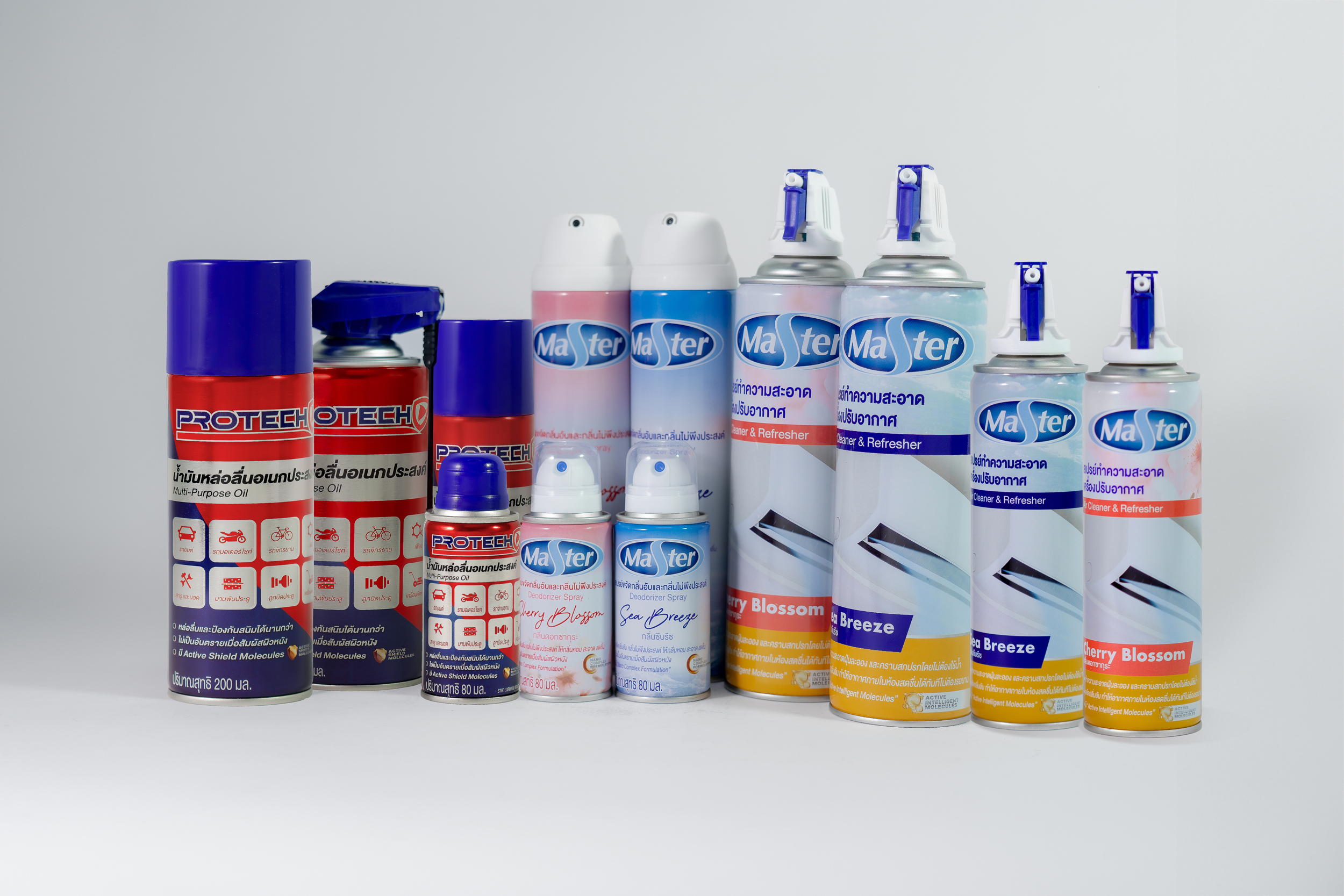 ส่วนแบรนด์ MASTER มีจุดขายด้วยความเป็นผู้เชี่ยวชาญด้านความหอม สะอาด ปลอดภัย ไม่มีสารก่อมะเร็งและสาร CFC ซึ่งผลิตภัณฑ์ MASTER มี 2 แบบที่วางขายในตลาดภายใต้แบรนด์นี้ได้แก่ ผลิตภัณฑ์สเปรย์ทำความสะอาดเครื่องปรับอากาศโดยไม่ต้องใช้น้ำ (MASTER Air Cleaner & Refresher Spray) มีจุดเด่นคือ มีนวัตกรรม Active Intelligent Molecules โมเลกุลอัจฉริยะที่คอยดักจับสิ่งสกปรกในแอร์ ให้เกาะไปกับน้ำพร้อมไหลลงสู่ท่อน้ำทิ้งแอร์ มีขนาด 500 มล. และ 250 มล. และผลิตภัณฑ์สเปรย์ขจัดกลิ่นอับและกลิ่นไม่พึงประสงค์ (MASTER Deodorizer Spray) พร้อมให้ความหอม สะอาด มีนวัตกรรม Nano Complex Formulation ที่ช่วยดักจับและขจัดกลิ่นอับและกลิ่นไม่พึงประสงค์ และให้กลิ่นหอม สะอาด สดชื่นในทุกโอกาส มีขนาด 300 มล. และ 80 มล. ซึ่งทั้ง 2 ผลิตภัณฑ์นั้น มี 2 กลิ่นได้แก่ กลิ่นซีบรีซ และกลิ่นดอกซากุระ