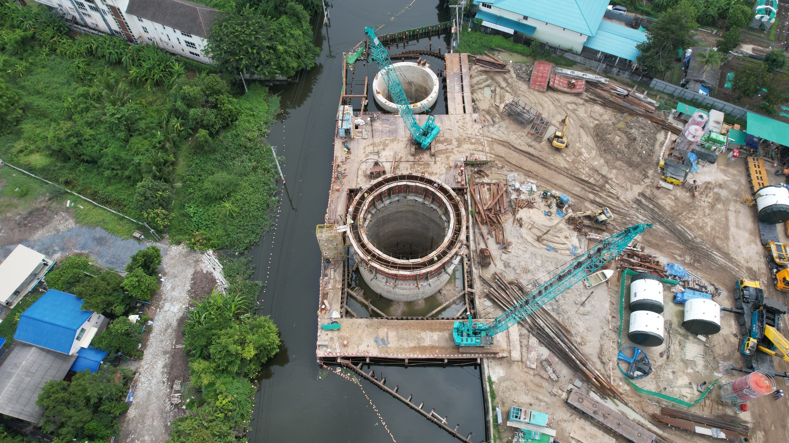 โครงการก่อสร้างดังกล่าว เป็นโครงการของการประปานครหลวง (กปน.) ซึ่งมีห้างหุ้นส่วนจำกัด สามประสิทธิ์ เป็นผู้ว่าจ้าง ประกอบด้วยงานก่อสร้างหลัก ได้แก่ งานขุดเจาะอุโมงค์ส่งน้ำ, งานก่อสร้างบ่อก่อสร้าง และ งานผลิตชิ้นส่วนผนังอุโมงค์คอนกรีตเสริมแรงสำหรับอุโมงค์ส่งน้ำ เมื่อแล้วเสร็จจะสามารถขยายกำลังการผลิตน้ำประปาให้เพิ่มขึ้น 80,000 ลูกบาศก์เมตร/วัน เพียงพอต่อปริมาณความต้องการใช้น้ำที่เพิ่มขึ้นในอนาคตของประชาชนในพื้นที่ รวมถึงแก้ไขปัญหาค่าความเค็มของน้ำประปาที่มีผลกระทบในช่วงหน้าแล้ง