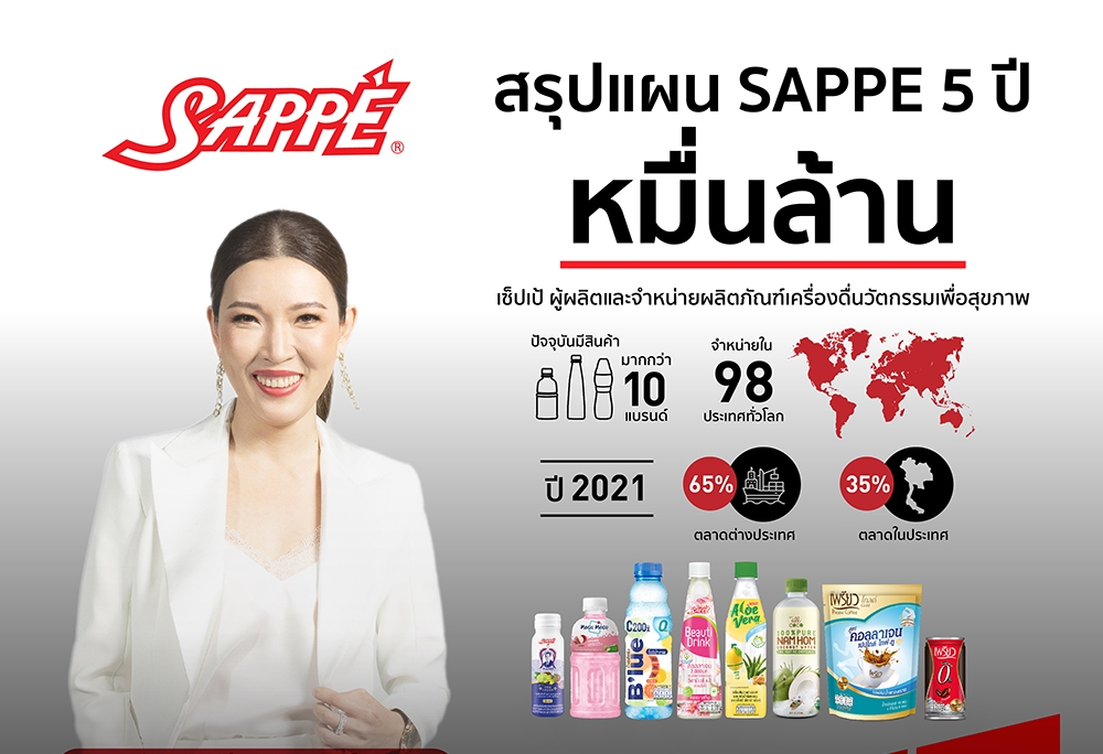 นางสาวปิยจิต รักอริยะพงศ์ ประธานเจ้าหน้าที่บริหาร บริษัท เซ็ปเป้ จำกัด (มหาชน) หรือ SAPPE เปิดเผยว่า บริษัทฯ ได้วางแผนยุทธศาสตร์ โดยตั้งเป้าหมายรายได้จากการดำเนินธุรกิจเติบโต 3 เท่า (Triple Growth) หรือแตะ 10,000 ล้านบาท ภายใน 5 ปีข้างหน้า (2565-2569) จากปี 2564 ที่มีรายได้จากการดำเนินธุรกิจ 3,444.16 ล้านบาท ภายใต้การเติบโตจากธุรกิจ 4 ส่วน ได้แก่