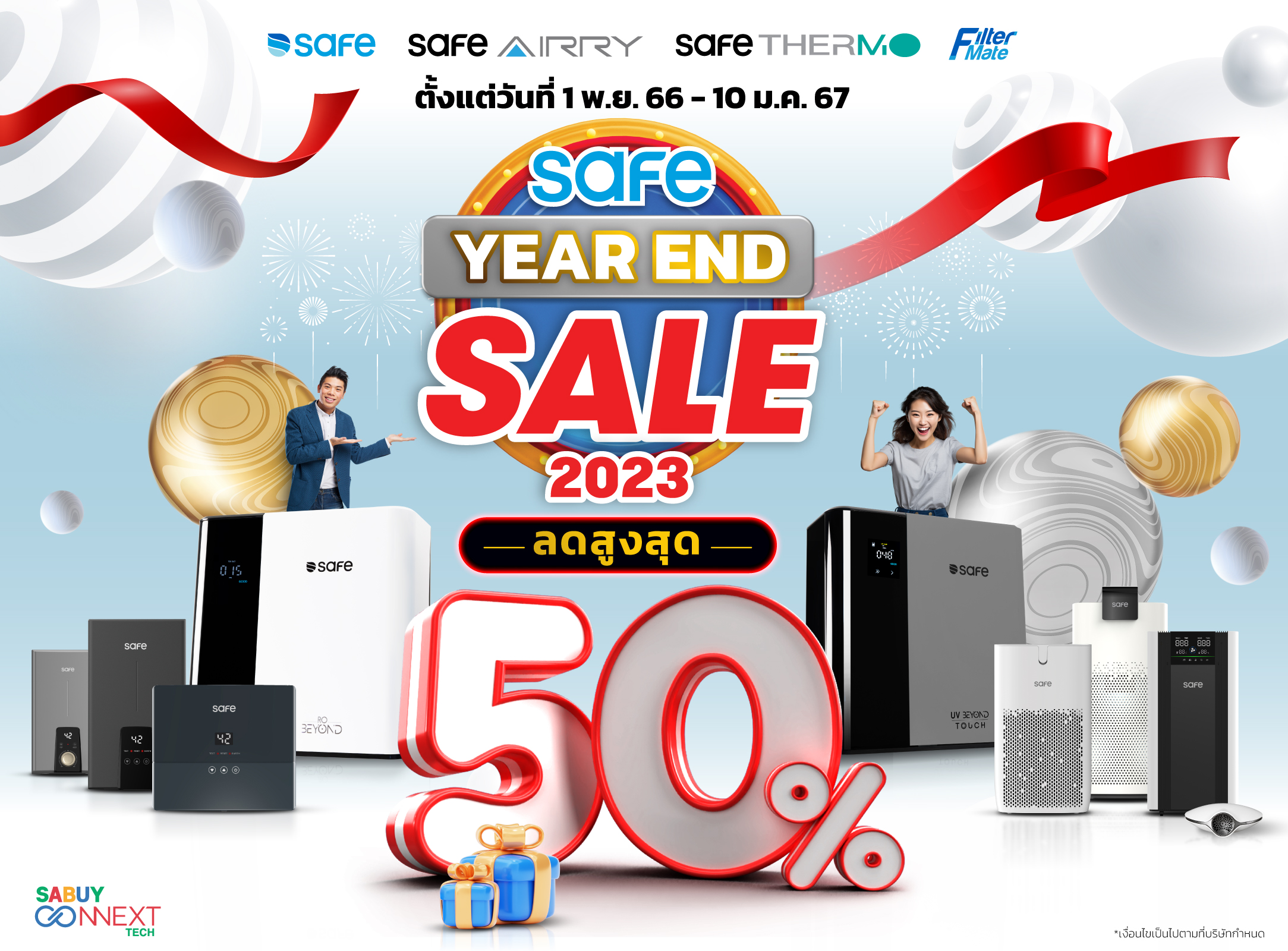 SBNEXT ฉลองส่งท้ายปีเก่าต้อนรับปีใหม่ จัดแคมเปญสุดพิเศษ “SAFE YEAR END SALE 2023” ยกทัพสินค้าแบรนด์เซฟทั้งขบวน มาลดราคาสูงสุด 50 % อาทิ เครื่องกรองน้ำ เครื่องทำน้ำอุ่น เครื่องฟอกอากาศ และไส้กรองมาตรฐาน ที่ใช้ได้กับเครื่องกรองน้ำทุกรุ่น ทุกยี่ห้อ พร้อมสินค้าอื่นๆ ที่ร่วมรายการอีกมากมาย
