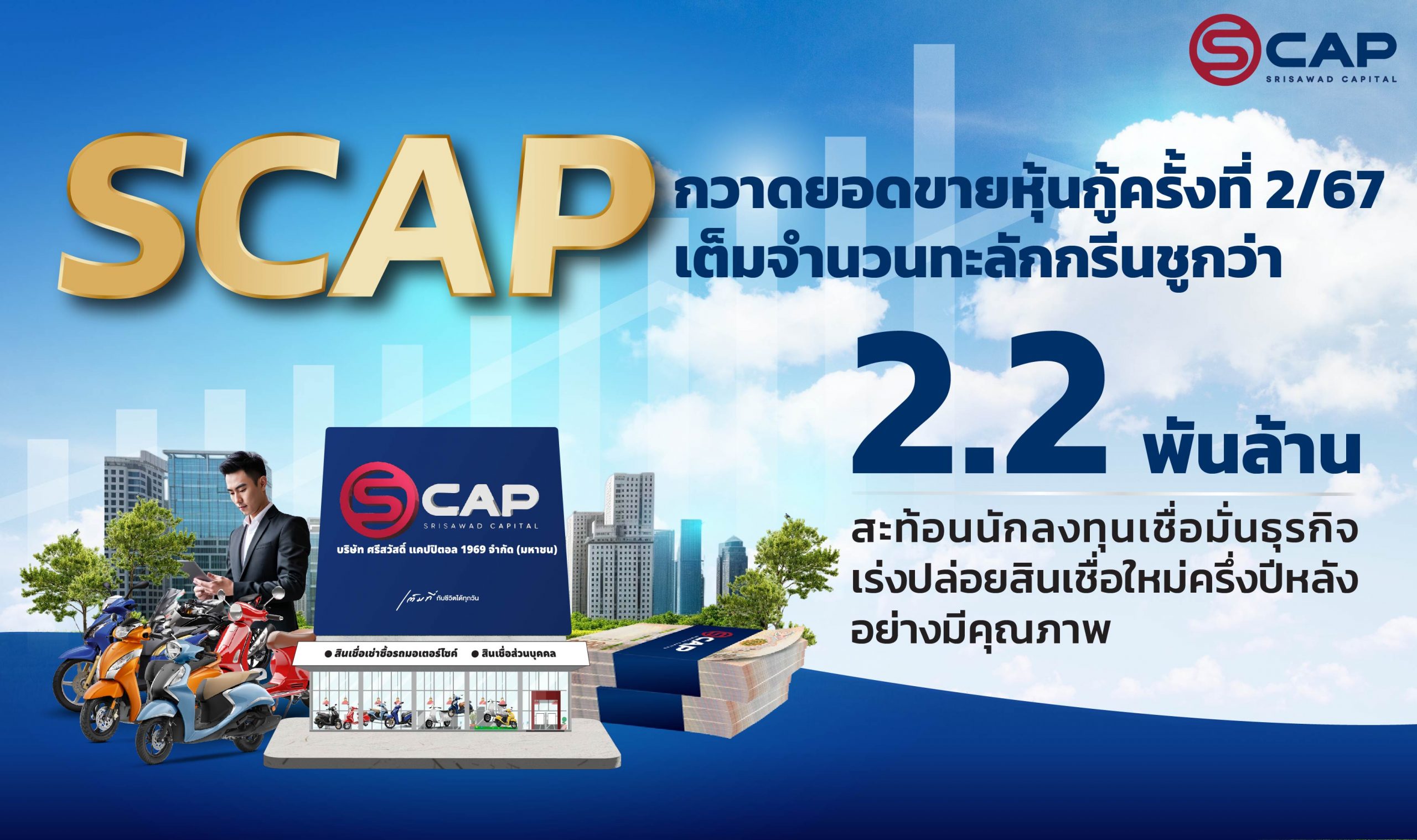 บริษัท ศรีสวัสดิ์ แคปปิตอล 1969 จำกัด (มหาชน) หรือ SCAP เปิดเผยถึง การเสนอขายหุ้นกู้ชุดใหม่ ภายใต้ชื่อ ‘หุ้นกู้ของบริษัท ศรีสวัสดิ์ แคปปิตอล 1969 จำกัด (มหาชน) ครั้งที่ 2/2567’ เมื่อวันที่ 10-12 มิถุนายนที่ผ่านมา รวมทั้งสิ้น 3 ชุด โดยมีอายุตั้งแต่ 2-4 ปี ดอกเบี้ยคงที่ 4.50% ต่อปี, 4.90% ต่อปี และ 5.05% ต่อปี ตามลำดับ ซึ่งได้รับกระแสตอบรับที่ดีเยี่ยมจากนักลงทุนทั่วไป ปิดยอดขายเต็มวงเงินจัดสรร 1,500 ล้านบาท ส่งผลให้บริษัทได้ดำเนินการนำหุ้นกู้ส่วนสำรองออกเสนอขายเพิ่มเติมในวงเงินไม่เกิน 1,000 ล้านบาท ตามความต้องการของนักลงทุน ผลปรากฏมียอดจองซื้อเพิ่ม รวมยอดขายสุทธิราว 2,277 ล้านบาท