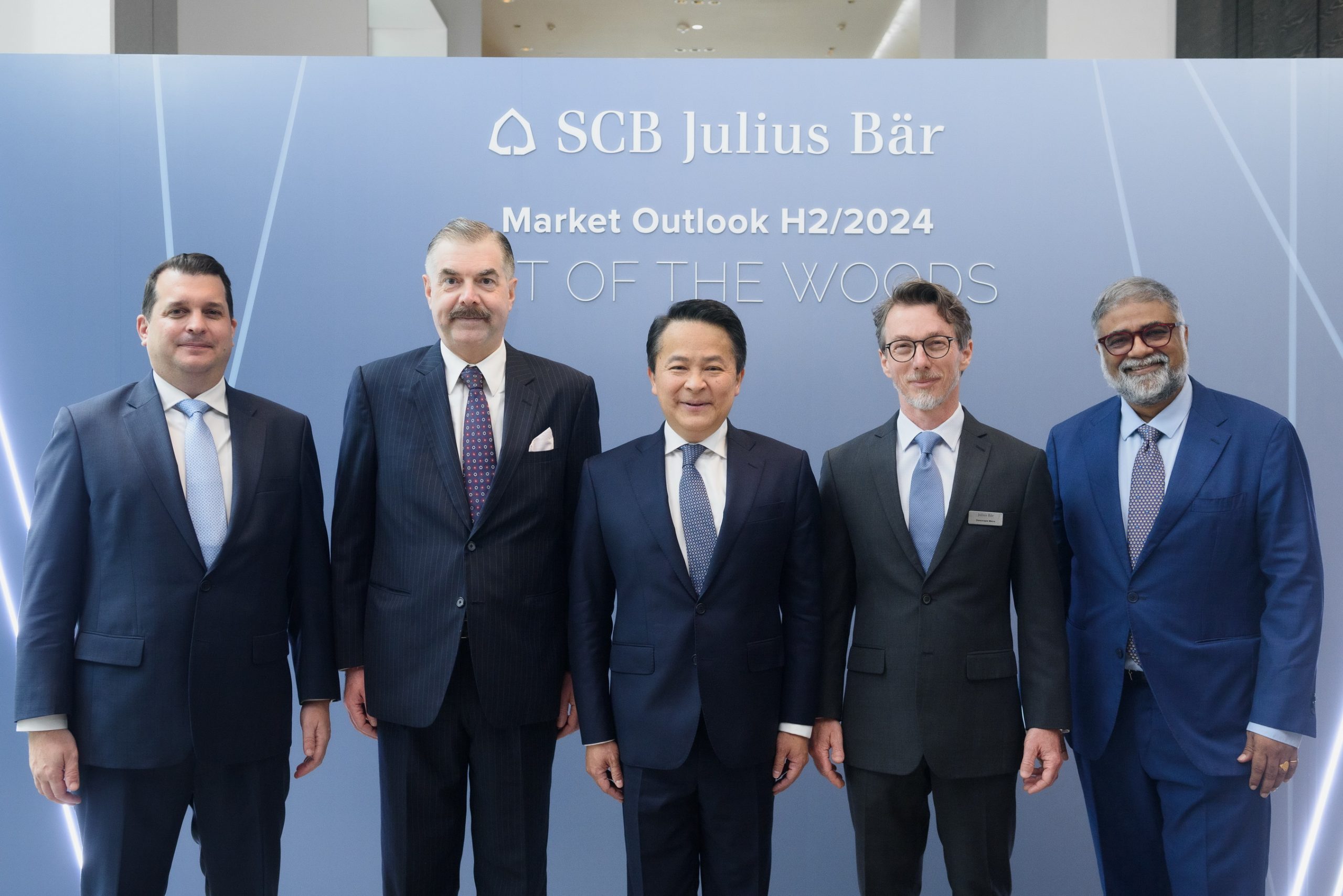 “บริษัทหลักทรัพย์ ไทยพาณิชย์ จูเลียส แบร์ จำกัด” (SCB Julius Baer) จัดงานสัมมนาเอ็กซ์คลูซีฟ “มุมมองเศรษฐกิจโลกครึ่งปีหลังปี 2567” (Market Outlook Second Half 2024) สำหรับลูกค้าที่มีความมั่งคั่งระดับสูง (Ultra High Net Worth Individuals–UHNWIs) นำเสนอถึงปัจจัยสำคัญที่มีผลต่อการลงทุนในช่วงครึ่งปีหลัง ที่จัดทำโดยจูเลียส แบร์ โดยให้มุมมองว่า ภาพรวมเศรษฐกิจโลกมีแนวโน้มฟื้นตัวดีขึ้น “Out of the Woods” ซึ่งเป็นโอกาสที่ดีในการลงทุนในหลากหลายสินทรัพย์ ด้านเศรษฐกิจสหรัฐฯยังคงเติบโตอย่างแข็งแกร่ง และคาดหวังว่าจะมีการปรับลดอัตราดอกเบี้ยในเดือนกันยายน ขณะที่การค้าโลกได้รับแรงสนับสนุนจากการฟื้นตัวของภาคอุตสาหกรรมของจีน ด้านกลยุทธ์การลงทุน เงินสดยังคงน่าสนใจในการเก็บเงินทุนสำรองและสามารถนำไปลงทุนในสินทรัพย์อื่นได้ในครึ่งปีหลัง ขณะที่ตราสารหนี้ ยังคงเน้นลงทุนในหุ้นกู้คุณภาพดีและตราสารหนี้สกุลเงินสหรัฐฯในตลาดเกิดใหม่ แนะเน้นการลงทุนในหุ้นกลุ่มวัฏจักรมากขึ้น สำหรับธีม Next Generation ยังคงมุมมองเชิงบวกในกลุ่ม Automation, Robotics, และ Future Cities