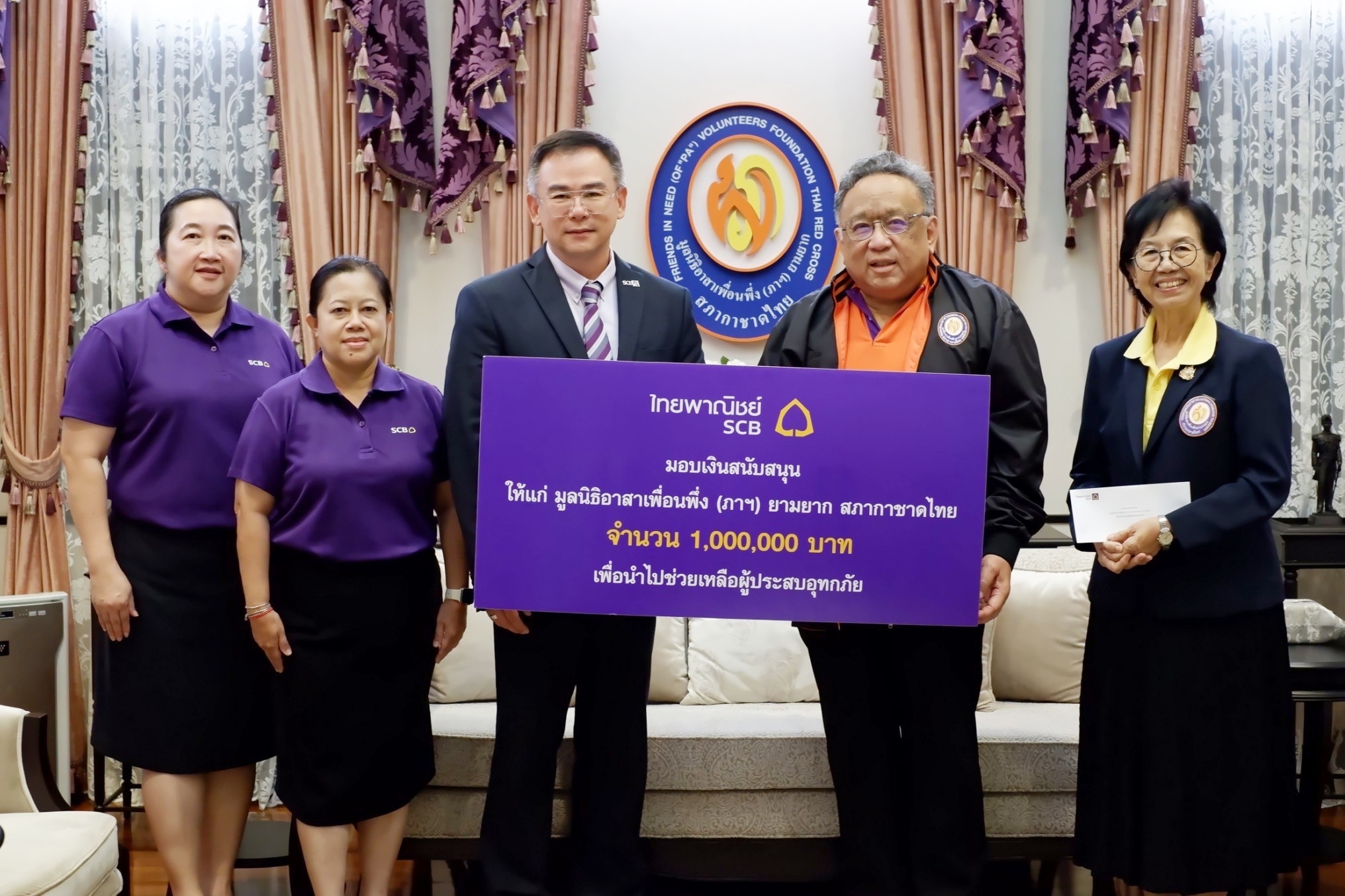 ธนาคารไทยพาณิชย์ จำกัด (มหาชน) โดย นายศักดิ์สิทธิ์ ปิติพงศ์สุนทร ผู้อำนวยการอาวุโส ผู้บริหาร สายงานกิจกรรมเพื่อสังคม มอบเงินจำนวน 1,000,000 บาท สมทบทุนมูลนิธิอาสาเพื่อนพึ่ง (ภาฯ) ยามยาก สภากาชาดไทย เพื่อนำไปช่วยเหลือผู้ประสบอุทกภัย โดยมี ศาสตราจารย์พิเศษ ธงทอง จันทรางศุ รองประธานกรรมการ และรองศาสตราจารย์ สุทธิมา ชำนาญเวช กรรมการและเหรัญญิกมูลนิธิฯ เป็นผู้รับมอบ ณ อาคารมหินทรเดชานุวัตน์ มูลนิธิอาสาเพื่อนพึ่ง (ภาฯ) ยามยาก สภากาชาดไทย
