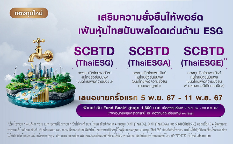 บลจ. ไทยพาณิชย์ เปิดตัว Thai ESG น้องใหม่ กองทุน SCBTD เปิด IPO วันที่ 5-11 พ.ย. 67