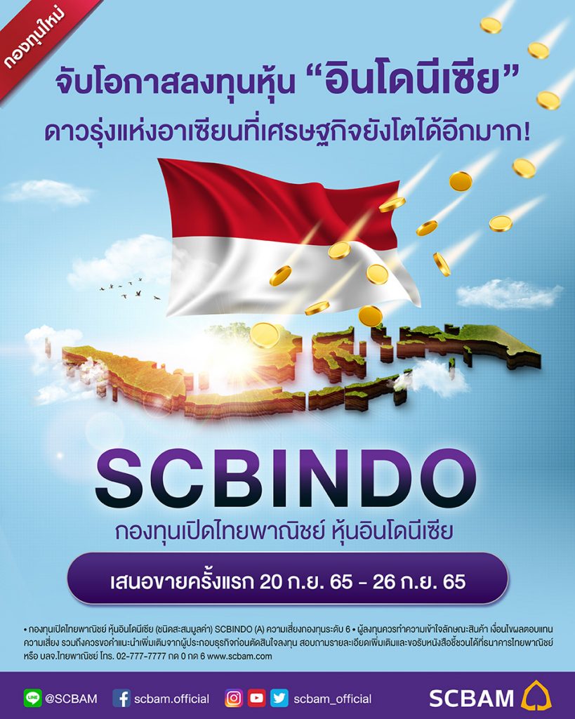 นางนันท์มนัส เปี่ยมทิพย์มนัส ประธานเจ้าหน้าที่บริหารการลงทุน บริษัทหลักทรัพย์จัดการกองทุน ไทยพาณิชย์ จำกัด หรือ SCBAM เปิดเผยว่า ตลาดหุ้นกลุ่มอาเซียนมีอัตราการขยายตัวทางเศรษฐกิจ (GDP) สูงมาอย่างต่อเนื่อง โดยเฉพาะประเทศอินโดนีเซียที่มีอัตราการขยายตัวทางเศรษฐกิจค่อนข้างสูงเมื่อเทียบกับค่าเฉลี่ยของกลุ่มประเทศในอาเซียนด้วยกัน โดยเฉพาะอินโดนีเซียที่มีอัตราการขยายตัวทางเศรษฐกิจค่อนข้างสูงเมื่อเทียบกับค่าเฉลี่ยของประเทศใน ASEAN โดย IMF คาดการณ์การเติบโต GDP ของประเทศอินโดนีเซียไว้ที่ 5.3% – 5.8% ในอีก 3–5 ปีข้างหน้า อีกทั้งมูลค่าพื้นฐานของตลาดหุ้นอินโดนีเซียยังอยู่ในระดับที่เหมาะสม และการเคลื่อนไหวของผลตอบแทนมีความสัมพันธ์กับตลาดหุ้นของประเทศอื่นค่อนข้างต่ำ โดยเฉพาะตลาดหุ้นโลกและตลาดหุ้นสหรัฐฯ จึงเหมาะเป็นทางเลือกที่ช่วยกระจายความเสี่ยงของพอร์ตลงทุนได้ SCBAM จึงได้เปิดเสนอขาย กองทุนเปิดไทยพาณิชย์ หุ้นอินโดนีเซีย (SCBINDO) เริ่มเสนอขายครั้งแรกวันที่ 20-26 กันยายน 2565 นี้ โดยในช่วงแรกจะเสนอขายเฉพาะชนิดสะสมมูลค่า SCBINDO(A) ผู้ลงทุนสามารถลงทุนขั้นต่ำเพียง 1,000 บาท