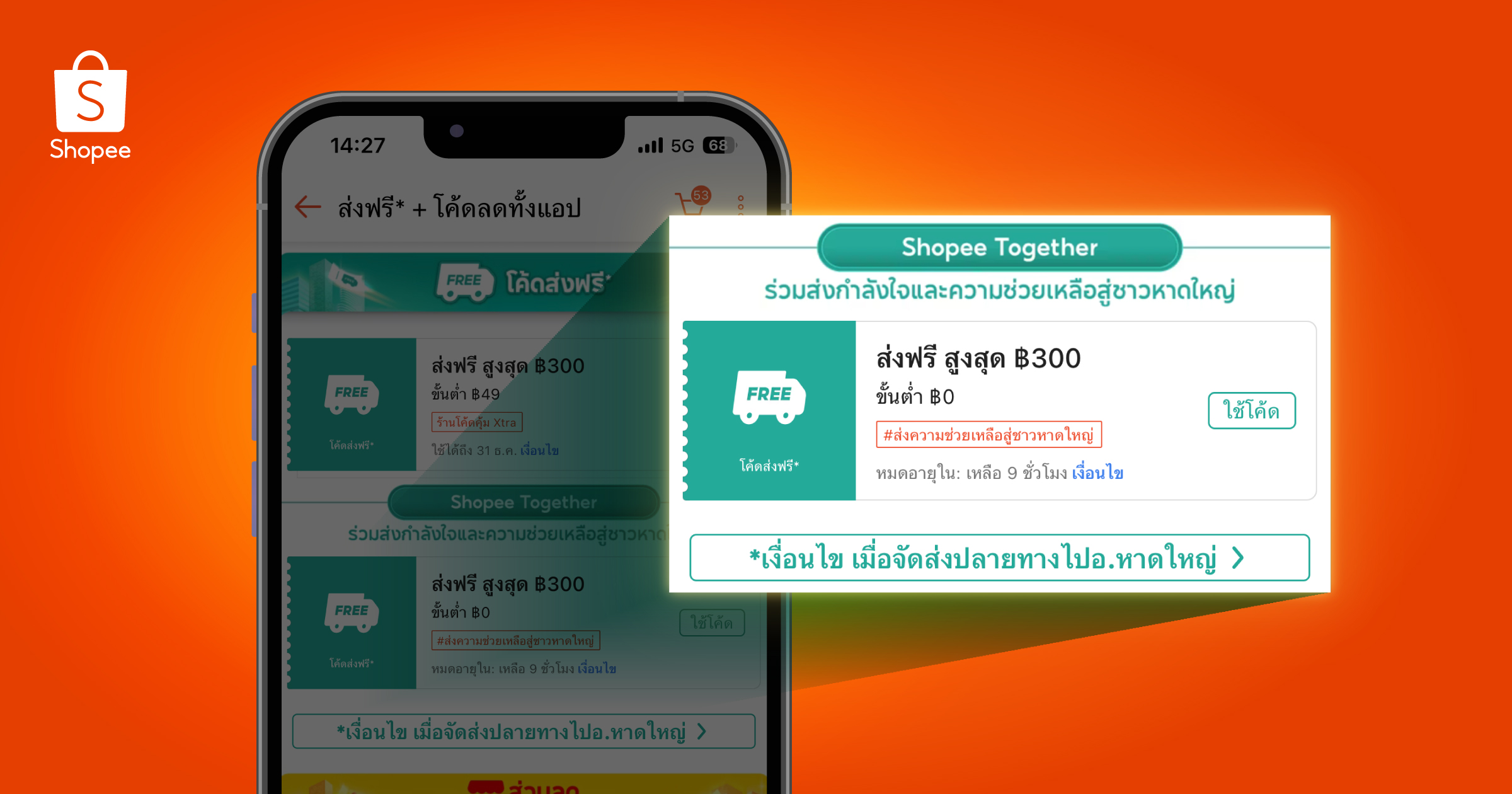 -มอบโค้ดส่งฟรีทั้งเดือนสำหรับคำสั่งซื้อปลายทางหาดใหญ่: ช้อปปี้สนับสนุนค่าใช้จ่ายด้านการจัดส่งด้วยโค้ดส่งฟรีตลอดเดือนธันวาคม 2568 สำหรับคำสั่งซื้อที่มีปลายทางในอำเภอหาดใหญ่ ช่วยให้ประชาชนเข้าถึงสินค้าอุปโภคบริโภคจำเป็นได้สะดวกขึ้น ลดภาระค่าใช้จ่ายหลังเหตุการณ์น้ำท่วม สอดคล้องกับมาตรการบรรเทาความเดือดร้อนของสำนักงานคณะกรรมการคุ้มครองผู้บริโภค (สคบ.)