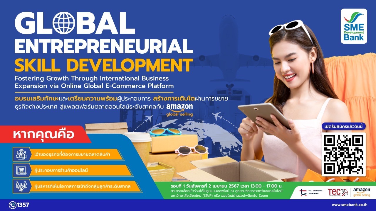 ธนาคารพัฒนาวิสาหกิจขนาดกลางและกลางย่อมแห่งประเทศไทย (ธพว.) หรือ SME D Bank ธนาคารเพื่อเอสเอ็มอีไทย เดินหน้าพันธกิจด้านการพัฒนา สนับสนุนผู้ประกอบการเอสเอ็มอีคว้าโอกาสยกระดับขยายตลาดสู่สากล จากผู้ใช้งานแพลตฟอร์มตลาดออนไลน์ “amazon.com” ที่มีจำนวนกว่า 2 พันล้านคนทั่วโลก โดยจับมือกับสมาคมผู้ประกอบการพาณิชย์อิเล็กทรอนิกส์ไทย (Thai e-Commerce Association) และบริษัท เทค อี-บิสสิเนส เซ็นเตอร์ จำกัด (TeC) จัด “โครงการพัฒนาทักษะและเตรียมความพร้อมผู้ประกอบการ เพื่อสร้างการเติบโตผ่านการขยายธุรกิจต่างประเทศ และต่อยอดสู่แพลตฟอร์มตลาดออนไลน์ระดับสากล” สนับสนุนผู้ประกอบการเอสเอ็มอีไทย ประเภทธุรกิจต่างๆ เช่น อาหาร เครื่องดื่ม สินค้าอุปโภคบริโภค และการผลิตต่าง ๆ ที่มีมาตรฐานสำหรับการส่งออก เข้ารับการอบรมพัฒนาทักษะและเตรียมความพร้อมขยายธุรกิจในต่างประเทศ รวมถึง ได้รับสิทธิ์นำสินค้าขึ้นขายบนร้านค้าของโครงการผ่านแพลตฟอร์ม amazon.com โดยไม่มีค่าใช้จ่ายใดๆ ทั้งสิ้น ซึ่งปกติจะมีค่าใช้จ่ายประมาณ 300,000-500,000 บาทต่อราย ในการเปิดร้านค้าและการทำตลาด