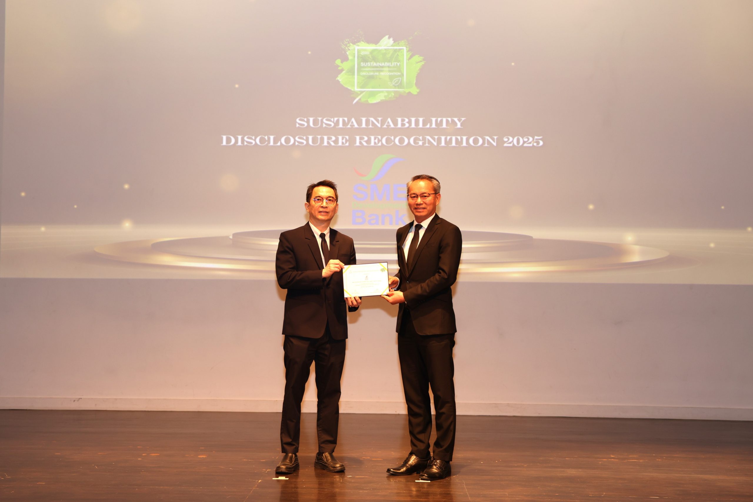นายพิชิต มิทราวงศ์ กรรมการผู้จัดการ ธนาคารพัฒนาวิสาหกิจขนาดกลางและขนาดย่อมแห่งประเทศไทย (ธพว.) หรือ SME D Bank รับ “รางวัลเกียรติคุณ Sustainability Disclosure Recognition ประจำปี 2568” ในงานพิธีมอบรางวัลการเปิดเผยข้อมูลความยั่งยืนประจำปี 2568 จากสถาบันไทยพัฒน์ เพื่อมอบให้แก่องค์กรที่แสดงถึงความโปร่งใสและความมุ่งมั่นในการเปิดเผยข้อมูลด้านการพัฒนาความยั่งยืนตามมาตรฐานสากล ตามแนวทาง ESG ที่ครอบคลุมทั้งมิติด้านสิ่งแวดล้อม สังคม และการกำกับดูแลกิจการที่ดี โดยมี ดร.พิพัฒน์ ยอดพฤติการ ประธานสถาบันไทยพัฒน์ เป็นประธานในพิธี และมอบรางวัล ณ ห้องออดิทอเรียม หอศิลปวัฒนธรรมแห่งกรุงเทพมหานคร ถนนพระรามที่ 1 กรุงเทพมหานคร เมื่อวันที่ 25 พฤศจิกายน 2568 ที่ผ่านมา