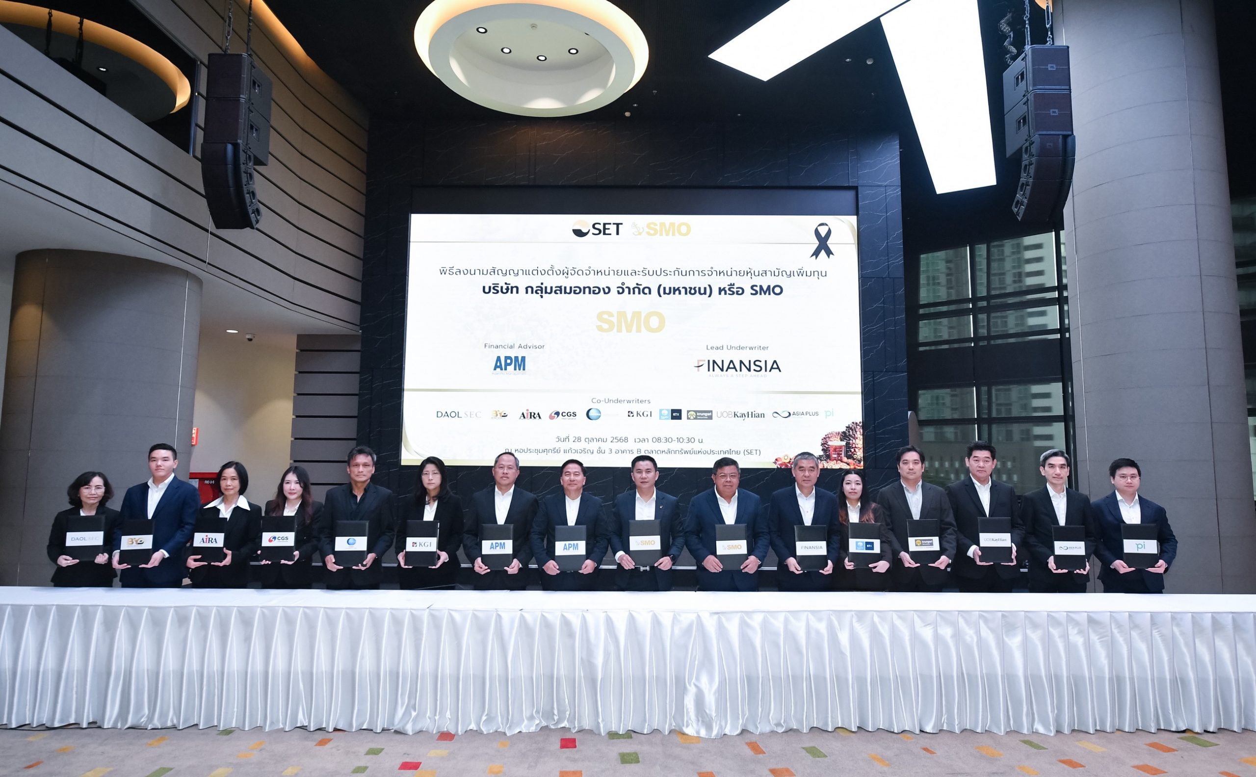 ดร.สมภพ ศักดิ์พันธ์พนม ประธานกรรมการ บริษัท แอสเซท โปร แมเนจเม้นท์ จำกัด หรือ APM ในฐานะที่ปรึกษาทางการเงินของ บริษัท กลุ่มสมอทอง จำกัด (มหาชน) หรือ SMO เปิดเผยว่า “การแต่งตั้งผู้จัดจำหน่ายและรับประกันการจำหน่ายหุ้น IPO ของ SMO เป็นอีกก้าวสำคัญของบริษัทในการขยายศักยภาพทางธุรกิจ SMO ได้ลงนามในสัญญาแต่งตั้งผู้จัดการการจำหน่าย และรับประกันการจำหน่าย เพื่อเสนอขายหุ้นสามัญเพิ่มทุนต่อประชาชนทั่วไปครั้งแรก หรือ IPO โดยมีบริษัทหลักทรัพย์ ฟินันเซีย ไซรัส จำกัด (มหาชน) เป็นผู้จัดการการจำหน่าย และรับประกันการจำหน่าย และมีบริษัทหลักทรัพย์ ดาโอ (ประเทศไทย) จำกัด (มหาชน), บริษัทหลักทรัพย์ บียอนด์ จำกัด (มหาชน), บริษัทหลักทรัพย์ ไอร่า จำกัด (มหาชน), บริษัทหลักทรัพย์ ซีจีเอส-อินเตอร์เนชั่นแนล (ประเทศไทย) จำกัด, บริษัทหลักทรัพย์ โกลเบล็ก จำกัด, บริษัทหลักทรัพย์ เคจีไอ (ประเทศไทย) จำกัด (มหาชน), บริษัทหลักทรัพย์ กรุงไทย เอ็กซ์สปริง จำกัด, บริษัทหลักทรัพย์ กรุงศรี จำกัด (มหาชน), บริษัทหลักทรัพย์ ยูโอบี เคย์เฮียน (ประเทศไทย) จำกัด (มหาชน), บริษัทหลักทรัพย์ เอเซีย พลัส จำกัด, บริษัทหลักทรัพย์ พาย จำกัด (มหาชน) เป็นผู้ร่วมเป็นผู้จัดจำหน่าย และรับประกันการจำหน่าย