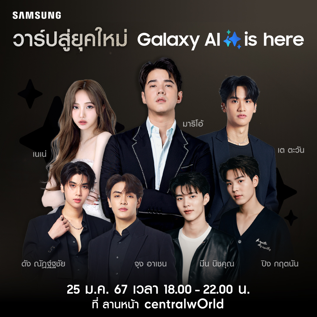 Galaxy AI is here ร่วมวาร์ปสู่ยุคใหม่ไปด้วยกันในวันที่ 25 มกราคม 2567 เวลา 18.00 – 22.00 น. ณ ลานหน้าเซ็นทรัลเวิลด์ #Samsung #GalaxyS24 #GalaxyAI is here #GalaxyS24xTayTawan #GalaxyS24xJoongDunk #GalaxyS24xMeenPing