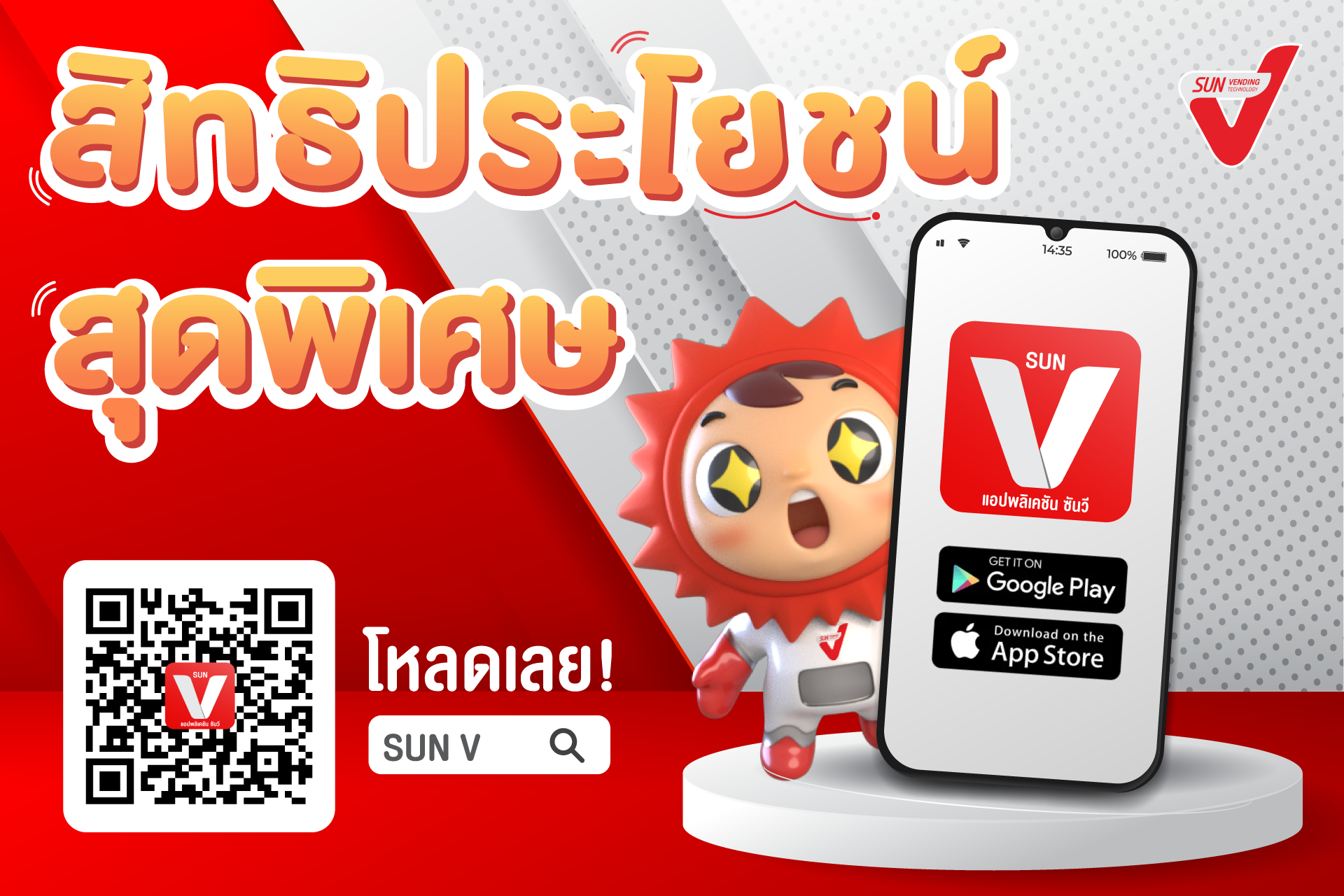 บริษัท ซันเวนดิ้ง เทคโนโลยี จำกัด (มหาชน) หรือ SVT ผู้นำธุรกิจตู้จำหน่ายสินค้าอัตโนมัติ มอบสิทธิประโยชน์สุดพิเศษสำหรับลูกค้า SUN Vending สมัครเป็นสมาชิก รับไปเลย Welcome Coupon ฟรี! ส่วนลดครั้งแรกสำหรับการสมัครสมาชิก สามารถเลือกใช้คูปองส่วนลดได้ 1 สิทธิ์ต่อเดือน และเพื่อเพิ่มสิทธิประโยชน์ให้มากกว่าเดิม สำหรับสมาชิก ทุกครั้งที่ซื้อสินค้าหน้าตู้ SUN Vending อย่าลืมสะสมแต้ม ด้วยการกรอกหมายเลขโทรศัพท์ที่สมัครสมาชิก โดยทุก 4 บาท จะได้รับ คะแนนสะสม 1 แต้ม ยิ่งสะสมแต้มมาก ยิ่งได้รับสิทธิ์เพิ่ม โดยสมาชิกที่มีคะแนนสะสมครบตามเงื่อนไขที่กำหนด จะถูกปรับระดับของสมาชิก เพื่อรับสิทธิประโยชน์ทันทีที่เพิ่มขึ้น ดังนี้