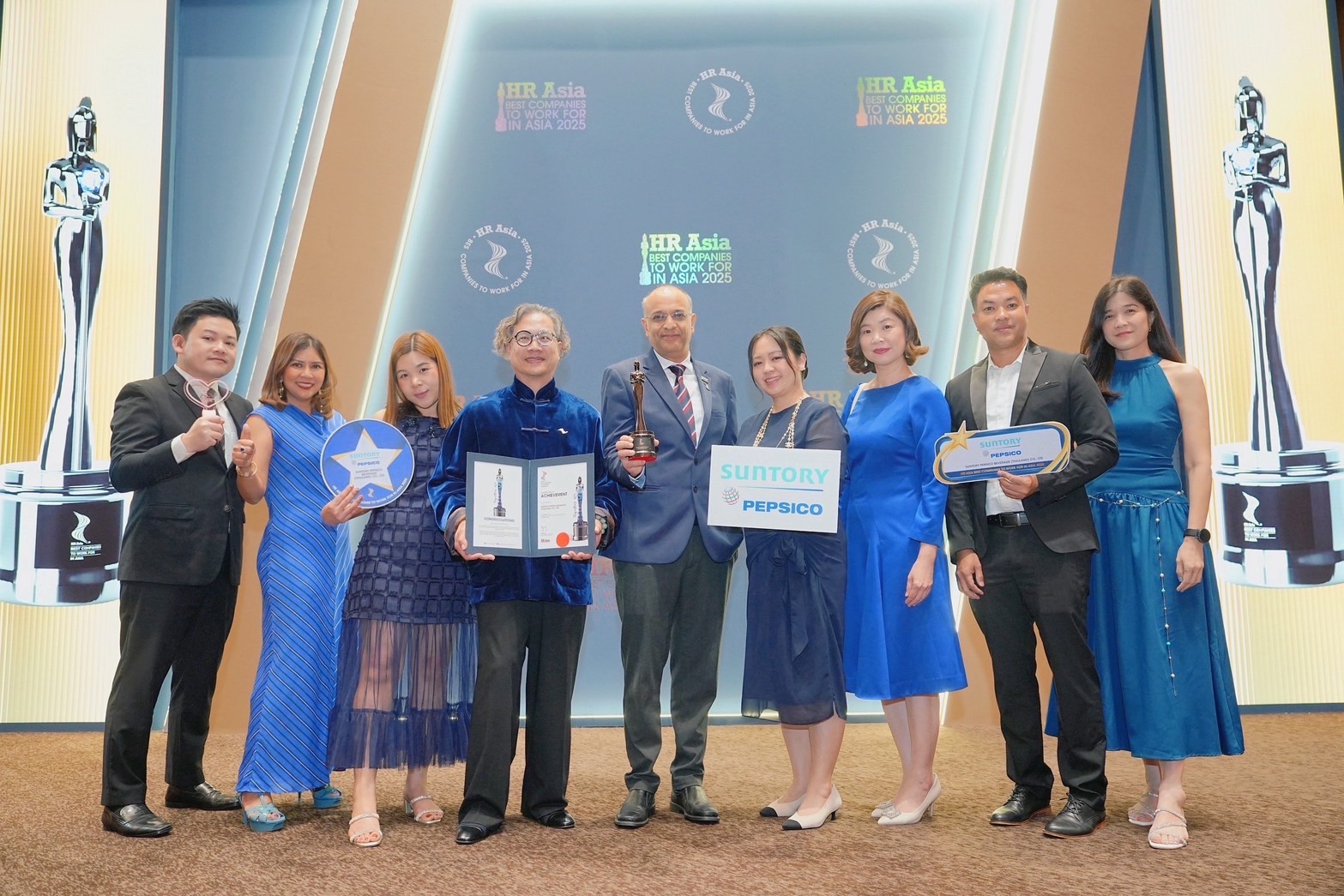 บริษัท ซันโทรี่ เป๊ปซี่โค เบเวอเรจ (ประเทศไทย) จำกัด ผู้ผลิตและจัดจำหน่ายเครื่องดื่มภายใต้แบรนด์สินค้าของซันโทรี่และเป๊ปซี่โคในประเทศไทย คว้ารางวัลองค์กรดีเด่นที่น่าทำงานมากที่สุดในเอเชียประจำปี 2568 (HR Asia Best Companies to Work for in Asia 2025) จากนิตยสาร HR Asia สื่อชั้นนำด้านการบริหารทรัพยากรบุคคลที่เป็นที่ยอมรับในภูมิภาคเอเชีย ซึ่งพิจารณามอบรางวัลให้กับองค์กรที่โดดเด่นด้านกลยุทธ์และการบริหารทรัพยากรบุคคลที่มีประสิทธิภาพ รวมถึงวัฒนธรรมองค์กรที่แข็งแกร่ง โดยมี นายทานุจ ชาดา ประธานเจ้าหน้าที่บริหาร และนายยศยุต สหวัชรินทร์ รองประธานบริหารอาวุโส ฝ่ายทรัพยากรมนุษย์และบรรษัทสัมพันธ์ บริษัท ซันโทรี่ เป๊ปซี่โค เบเวอเรจ (ประเทศไทย) จำกัด เป็นตัวแทนบริษัทฯ รับรางวัลอันทรงเกียรตินี้