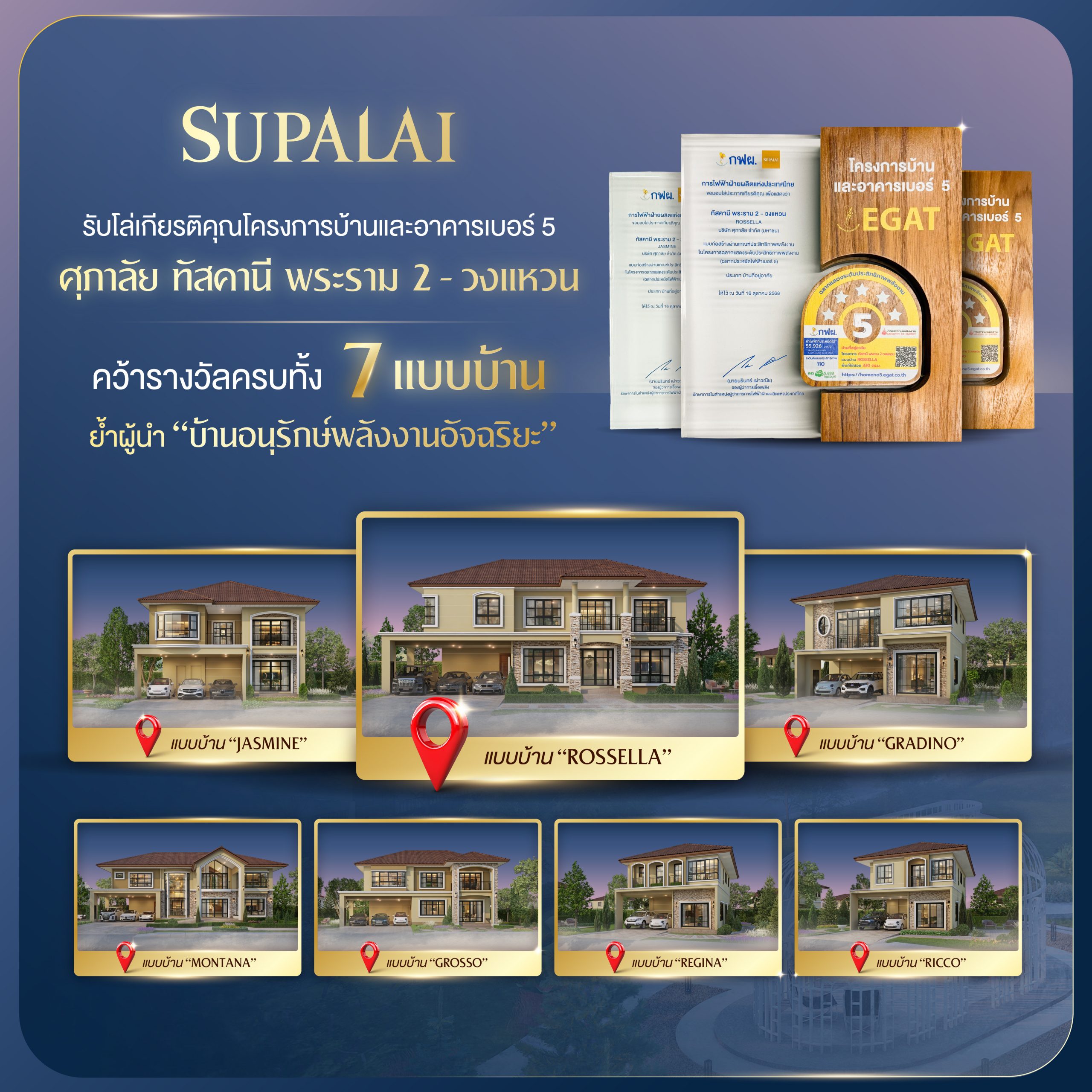 บริษัท ศุภาลัย จำกัด (มหาชน) คว้าโล่รางวัลอันทรงเกียรติในกลุ่มบ้านพักอาศัย จากโครงการ “ศุภาลัย ทัสคานี พระราม 2–วงแหวน” ซึ่งสามารถคว้ารางวัลได้ครบทั้ง 7 แบบบ้าน ได้แก่ MONTANA, ROSSELLA, GROSSO, JASMINE, GRANDINO, REGINA และ RICCO ตอกย้ำความสำเร็จของศุภาลัยในฐานะผู้นำการพัฒนาที่อยู่อาศัยที่ผสานนวัตกรรมการออกแบบเข้ากับแนวคิดอนุรักษ์พลังงานได้อย่างลงตัวในทุกมิติ สะท้อนถึงความตั้งใจของศุภาลัยในการพัฒนาและออกแบบที่อยู่อาศัยที่ผสานความงามทางสถาปัตยกรรมเข้ากับแนวคิดการอนุรักษ์พลังงานในทุกมิติ ภายใต้หัวใจสำคัญ “Quality Begins Inside – คุณภาพที่เริ่มจากข้างใน” ที่ศุภาลัยยึดมั่นในการออกแบบทุกองค์ประกอบของบ้านให้เริ่มต้นจากคุณภาพภายใน เพื่อมอบความอบอุ่น ปลอดภัย และยั่งยืนให้กับทุกครอบครัว