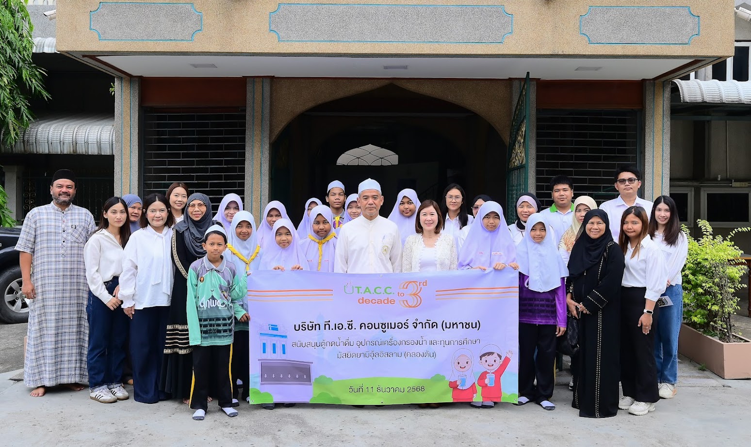 คุณสุวีรยา อังศวานนท์ ผู้อำนวยการฝ่ายกิจการองค์กรและนักลงทุนสัมพันธ์/คู่ค้าหลัก พร้อมด้วยตัวแทนพนักงาน บริษัท ที.เอ.ซี. คอนซูเมอร์ จำกัด (มหาชน) หรือ TACC ได้จัดกิจกรรมเพื่อสังคม (CSR) ในการดูแลพื้นที่บริเวณโดยรอบของสำนักงานใหญ่ ในโอกาสนี้ได้มอบตู้กดน้ำดื่ม อุปกรณ์เครื่องกรองน้ำ ทุนการศึกษา รวมถึงสินค้าคาแรคเตอร์ และเครื่องดื่มตรา Triva ให้กับมัสยิดยามิอุ้ลอิสลาม (คลองตัน) กรุงเทพฯ โดยมุ่งส่งเสริมสวัสดิการ คุณภาพชีวิต และการศึกษาของเยาวชนในชุมชน ซึ่งกิจกรรมดังกล่าวจัดขึ้นเมื่อเร็วๆ นี้