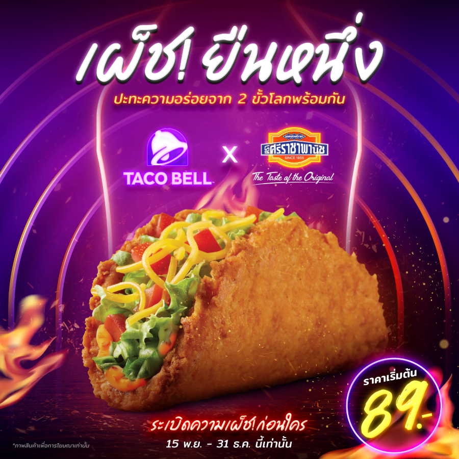 ทาโก้ เบลล์ (Taco Bell) ประเทศไทย เชนร้านอาหารจานด่วนชื่อดังจากแคลิฟอร์เนีย เปิดตัวเมนู “เนคเค็ด ชิกเก้น ทาโก้” (Naked Chicken Taco) ทาโก้ไก่ทอดซอสพริกศรีราชา อร่อยกรอบถึงเครื่องสไตล์ไทย พร้อมระเบิดความเผ็ชร้อนให้ลูกค้าทุก GEN ได้พิสูจน์ความจัดจ้านตั้งแต่วันที่ 15 พฤศจิกายน – 31 ธันวาคม 2564 ในราคาเพียง 89 บาท เท่านั้น