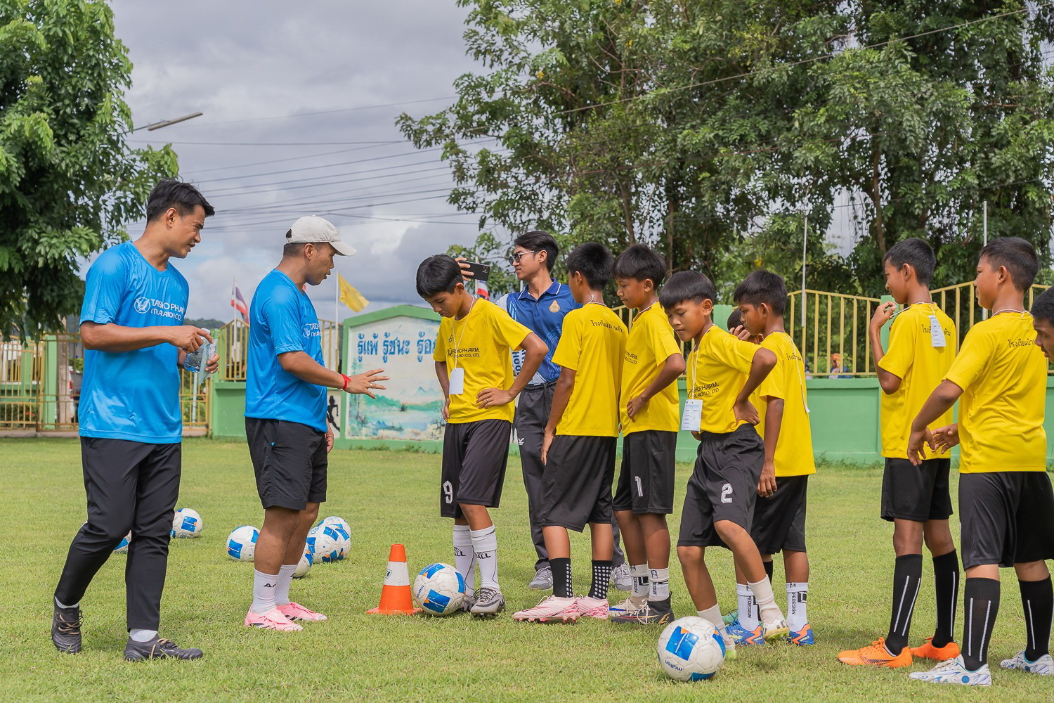เรามีโอกาสได้พูดคุยกับสองนักเตะทีมชาติระดับตำนานของวงการฟุตบอลไทย “โก้–ดัสกร ทองเหลา” และ “กบ–สุเชาว์ นุชนุ่ม” ที่ได้ร่วมลงพื้นที่และถ่ายทอดประสบการณ์ตรงให้กับเด็ก ๆ โดยทั้งคู่เผยความรู้สึกว่า “ดีใจและอิ่มใจมากที่ได้เป็นส่วนหนึ่งของกิจกรรมที่มีเป้าหมายในการส่งเสริมและจุดประกายความฝันให้กับเยาวชนไทย โดยเฉพาะเด็ก ๆ ในพื้นที่ห่างไกล กิจกรรมในวันนี้สนุกมาก เด็ก ๆ มีส่วนร่วมและให้ความร่วมมืออย่างเต็มที่ ทั้งเวิร์กชอปพื้นฐานฟุตบอล เช่น การเลี้ยงบอล ส่งบอล และยิงประตู รวมถึงเกมสนุก ๆ ที่ช่วยเสริมสร้างทั้งทักษะและแรงบันดาลใจ ซึ่งการวางรากฐานที่ดีจะเป็นจุดเริ่มต้นที่สำคัญสำหรับการต่อยอดสู่ความฝันในอนาคต บางครั้งการสอนฟุตบอล ไม่ใช่แค่เรื่องเทคนิค แต่คือการส่งต่อพลังใจให้เด็ก ๆ รู้ว่าพวกเขาก็มีโอกาสไปได้ไกลกว่าที่เขาคิด ขอขอบคุณ Taisho ที่ให้ความสำคัญกับเยาวชน และจัดกิจกรรมดี ๆ แบบนี้ เพราะกีฬาฟุตบอลเป็นได้มากกว่าแค่ความสนุก แต่เป็นเครื่องมือที่เข้าถึงหัวใจของเด็ก ๆ ได้ ช่วยเสริมสร้างสุขภาพที่ดี มีทัศนคติที่แข็งแรง และอาจเป็นแรงผลักดันให้เด็กบางคนสามารถเดินตามความฝันจนกลายเป็นนักเตะทีมชาติในอนาคตได้จริง ๆ วันนี้มีความสุขมากที่ได้เห็นรอยยิ้มและเสียงหัวเราะของน้อง ๆ ทุกคนครับ”