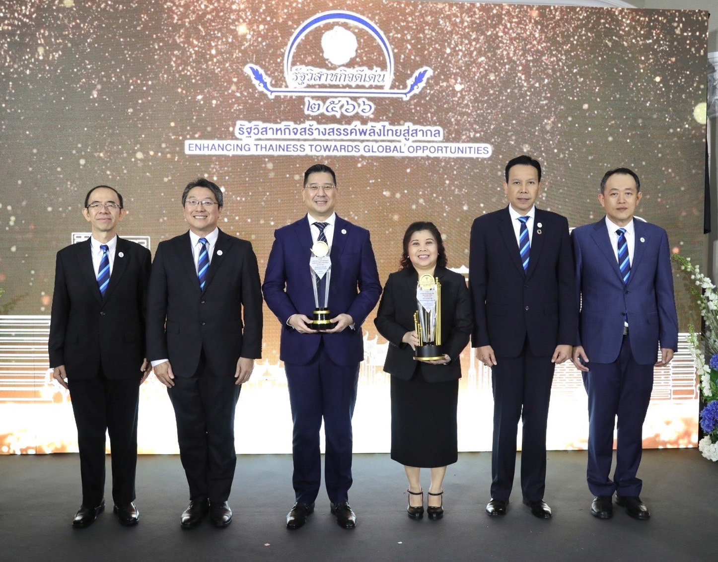 นายกฤษฎา จีนะวิจารณะ รัฐมนตรีช่วยว่าการกระทรวงการคลัง ประธานในพิธีมอบรางวัลรัฐวิสาหกิจดีเด่น ประจำปี 2566 ภายใต้แนวคิด รัฐวิสาหกิจสร้างสรรค์พลังไทยสู่สากล (Enhancing Thainess Towards Global Opportunities) จัดโดยสำนักงานคณะกรรมการนโยบายรัฐวิสาหกิจ (สคร.) มอบรางวัลรัฐวิสาหกิจดีเด่น ให้แก่ บรรษัทประกันสินเชื่ออุตสาหกรรมขนาดย่อม (บสย.) 2 รางวัลประเภท “รางวัลการดำเนินงานอย่างรับผิดชอบต่อสังคมและสิ่งแวดล้อมดีเด่น” และ “รางวัลความร่วมมือเชิงยุทธศาสตร์เพื่อการพัฒนาดีเด่น” โดย นายสิทธิกร ดิเรกสุนทร กรรมการและผู้จัดการทั่วไป บรรษัทประกันสินเชื่ออุตสาหกรรมขนาดย่อม (บสย.) เข้ารับรางวัล