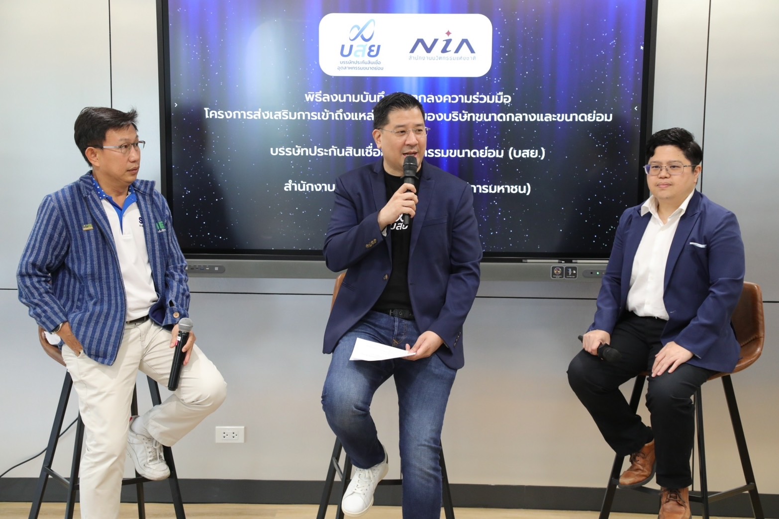 นายสิทธิกร ดิเรกสุนทร กรรมการและผู้จัดการทั่วไป บรรษัทประกันสินเชื่ออุตสาหกรรมขนาดย่อม (บสย.) เปิดเผยว่า บสย.มีหน้าที่ในการช่วยเหลือ เชื่อมโยงผู้ประกอบการ SMEs ให้เข้าถึงแหล่งทุน ภายใต้แนวคิด SMEs Gateway จึงได้วาง 3 บทบาทสำคัญคือ 1. การค้ำประกันสินเชื่อ SMEs 2. การให้คำปรึกษาทางการเงิน และ 3. การเพิ่มโอกาสให้ลูกหนี้ ที่กำลังประสบปัญหาการชำระหนี้ ได้กลับมาแข็งแรง ความร่วมมือกับ NIA ครั้งนี้ บสย. พร้อมมีส่วนร่วมสนับสนุน ผลักดันและพัฒนาผู้ประกอบการ SMEs รุ่นใหม่ โดยเฉพาะกลุ่ม Start-Ups และผู้ประกอบการในเครือข่ายของสมาพันธ์ SME ไทย ให้มีความรู้ทางด้านการเงิน การส่งเสริมและพัฒนาผู้ประกอบการให้มีพื้นฐานทางการเงินที่ถูกต้องและสามารถเข้าถึงแหล่งเงินทุนได้ง่ายขึ้นโดยผ่านกลไกการค้ำประกันสินเชื่อของ บสย.