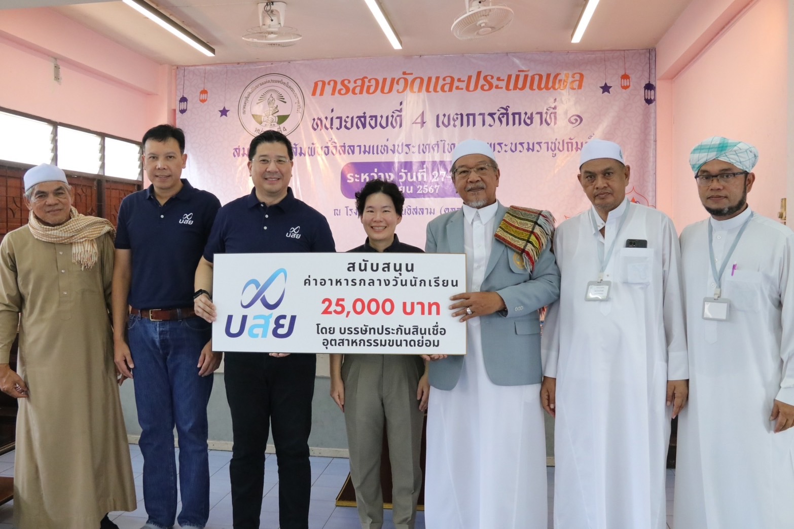 ทั้งนี้ บสย. ได้ร่วมสนับสนุนกิจกรรมการสอบและวัดผล และสนับสนุนอาหารกลางวันให้แก่นักเรียน กว่า 600 คน ที่เข้าร่วมสอบที่หน่วยสอบที่ 4 เขตการศึกษาที่ 1 สมาคมคุรุสัมพันธ์อิสลามแห่งประเทศไทย ในพระบรมราชูปถัมถ์ เพื่อช่วยบรรเทาภาระค่าใช้จ่ายของนักเรียนในการสอบวัดและประเมินผล ประจำปี 2566 ระหว่างวันที่ 27-29 เมษายน 2567 ตามแนวทางการเสริมสร้างความเข้มแข็งและการมีส่วนร่วมกับชุมชนของ บสย.