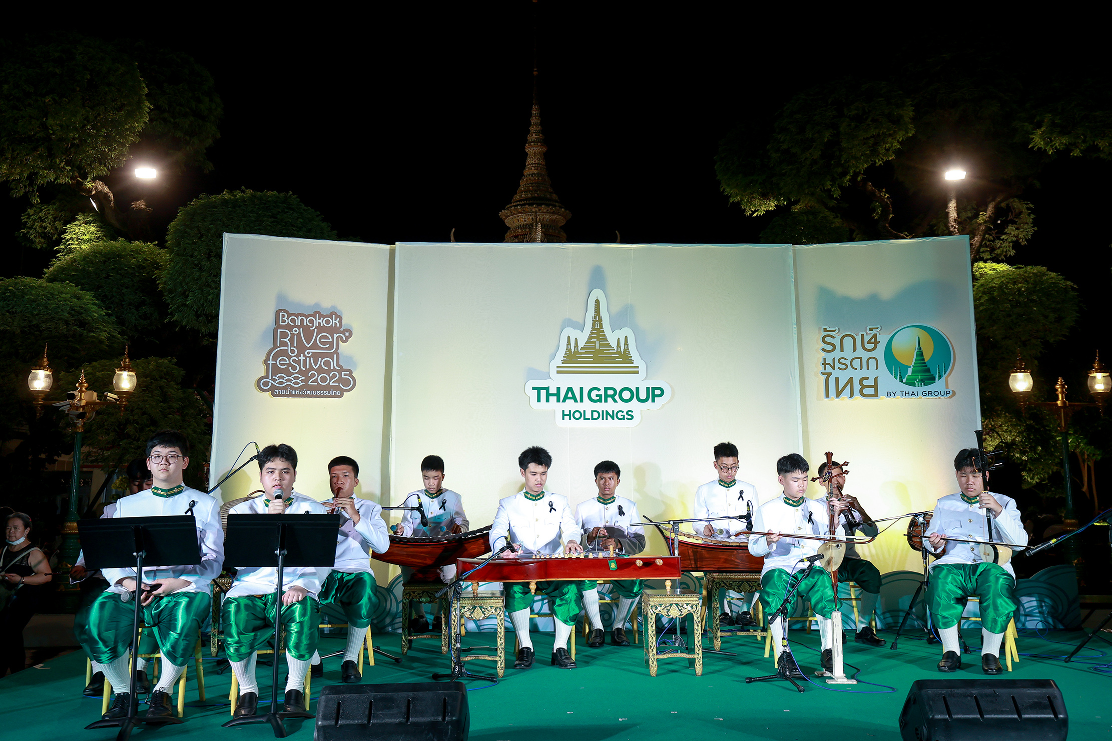 ภายในงาน ได้รับเกียรติจาก นายบวรศักดิ์ อุวรรณโณ (กลางภาพ) รองนายกรัฐมนตรี เยี่ยมชมกิจกรรม “รักษ์มรดกไทย BY THAI GROUP” ณ ลานอรุณ พร้อมด้วย นางสาวซาบีดา ไทยเศรษฐ์ (คนที่ 7 จากซ้าย) รัฐมนตรีว่าการกระทรวงวัฒนธรรม นายสุรพล เศวตเศรนี (คนที่ 5 จากขวา) ประธานการจัดงาน River Festival 2025 สายน้ำแห่งวัฒนธรรมไทย และผู้บริหารกระทรวงวัฒนธรรม ร่วมถ่ายภาพ โดยมี นายโชติพัฒน์ พีชานนท์(คนที่ 6 จากขวา) ประธานกรรมการบริหาร และนางอาทินันท์ พีชานนท์ (คนที่ 7 จากขวา) รองประธานกรรมการบริหาร บริษัท ไทยกรุ๊ป โฮลดิ้งส์ จำกัด (มหาชน) ให้การต้อนรับ เมื่อวันที่ 5 พฤศจิกายนที่ผ่านมา