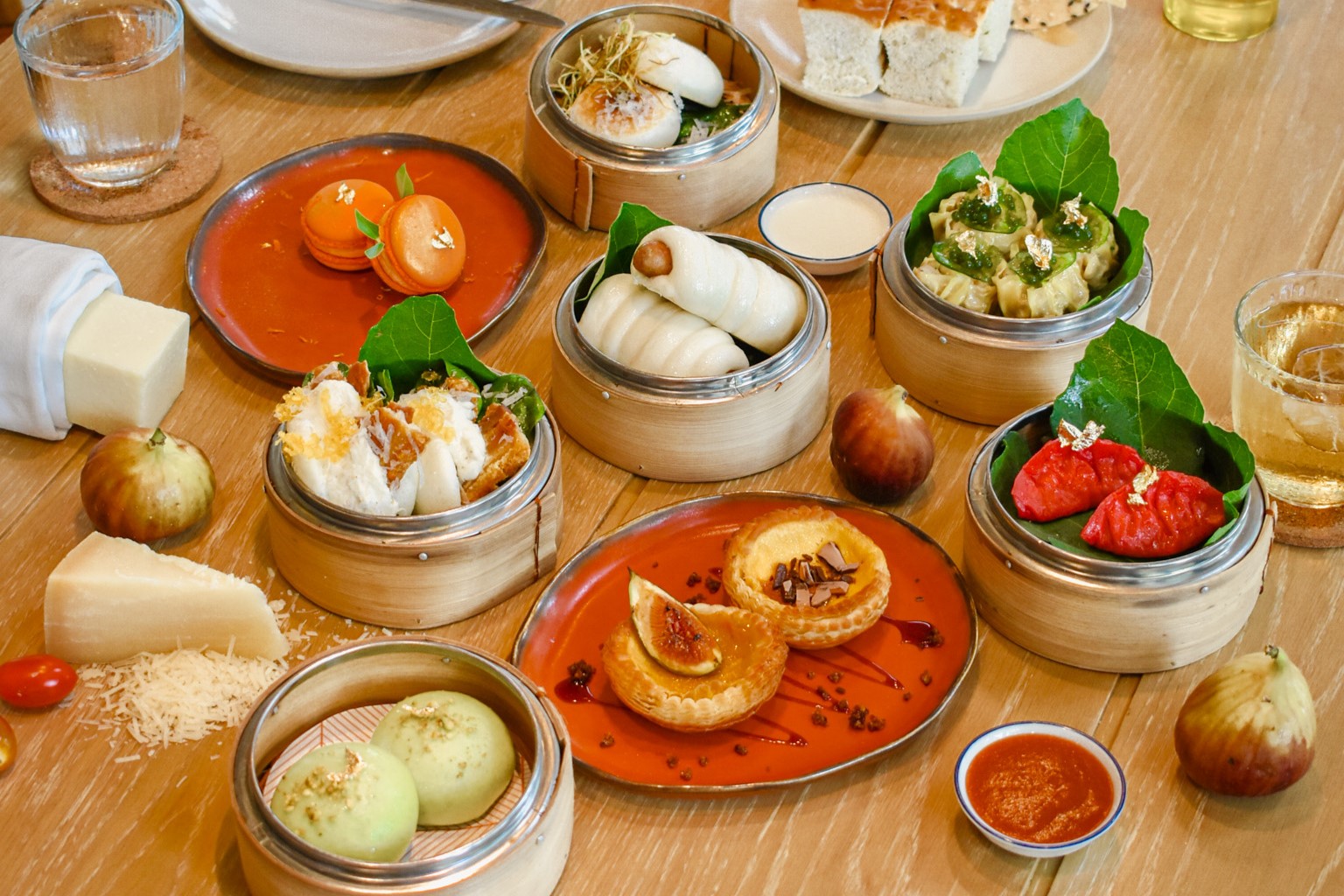 เซ็ตเมนูติ่มซำ 3 คอร์ส ถูกรังสรรค์มาอย่างลงตัวเริ่มต้นด้วยเมนูซาลาเปารสชาติกลมกล่อมได้รับแรงบันดาลใจมาจากเมนูพาสต้าสุดคลาสสิคอย่างคาร์โบนาร่าและโบโลเนสนำเสนอมาในรูปแบบกัวเปาปรุงแต่งโดยหมูสามชั้นกวานเซียเล่ ชีสนมแกะ เปโกรีโนปิดท้ายด้วยความละมุนจากไข่ปลากระบอกแห้ง มาจนถึงเมนูขนมจีบหลากหลายรสชาติ รสสัมผัสตั้งแต่ขนมจีบกุ้งและขนมจีบหมูแบบดั้งเดิมไปจนถึงขนมปังไส้กรอกอิตาเลี่ยน เกี๊ยวซ่าไส้ชีสปาร์มีจาโนเรจจาโนและเกี๊ยวซ่าไส้ปลาหมึก ส่งท้ายความอร่อยไปกับของหวานแสนอร่อยในรูปแบบซาลาเปาพิสตาชีโอและทาร์ตไข่ที่เพิ่มความหอมของลูกฟิก
