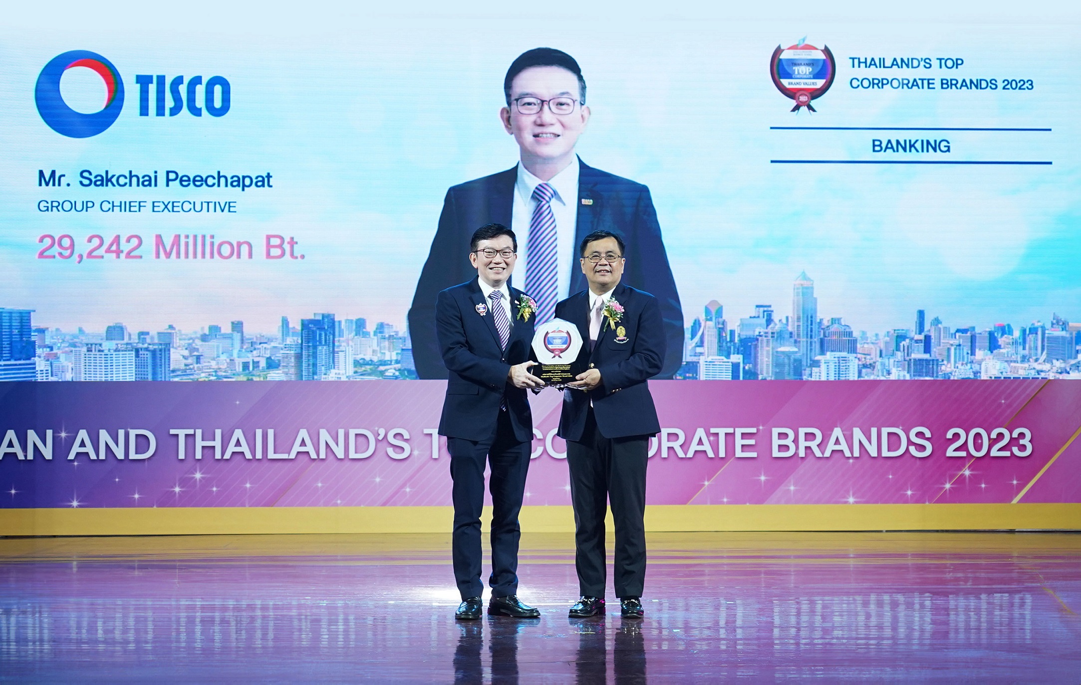 คุณศักดิ์ชัย พีชะพัฒน์ ประธานเจ้าหน้าที่บริหาร บริษัท ทิสโก้ไฟแนนเชียลกรุ๊ป จำกัด (มหาชน) หรือ กลุ่มทิสโก้ เข้ารับมอบโล่เกียรติยศในฐานะองค์กรที่มีมูลค่าแบรนด์สูงสุด ในหมวดธนาคาร ประจำปี 2566 ต่อเนื่องเป็นปีที่ 3 จากศาสตราจารย์ ดร.วิเลิศ ภูริวัชร คณบดีคณะพาณิชยศาสตร์และการบัญชี จุฬาลงกรณ์มหาวิทยาลัย ในงาน ASEAN and Thailand’s Top Corporate Brands 2023 จัดโดย จุฬาลงกรณ์มหาวิทยาลัย ร่วมกับตลาดหลักทรัพย์แห่งประเทศไทย และสื่อในเครือผู้จัดการ ณ หอประชุมจุฬาลงกรณ์มหาวิทยาลัย