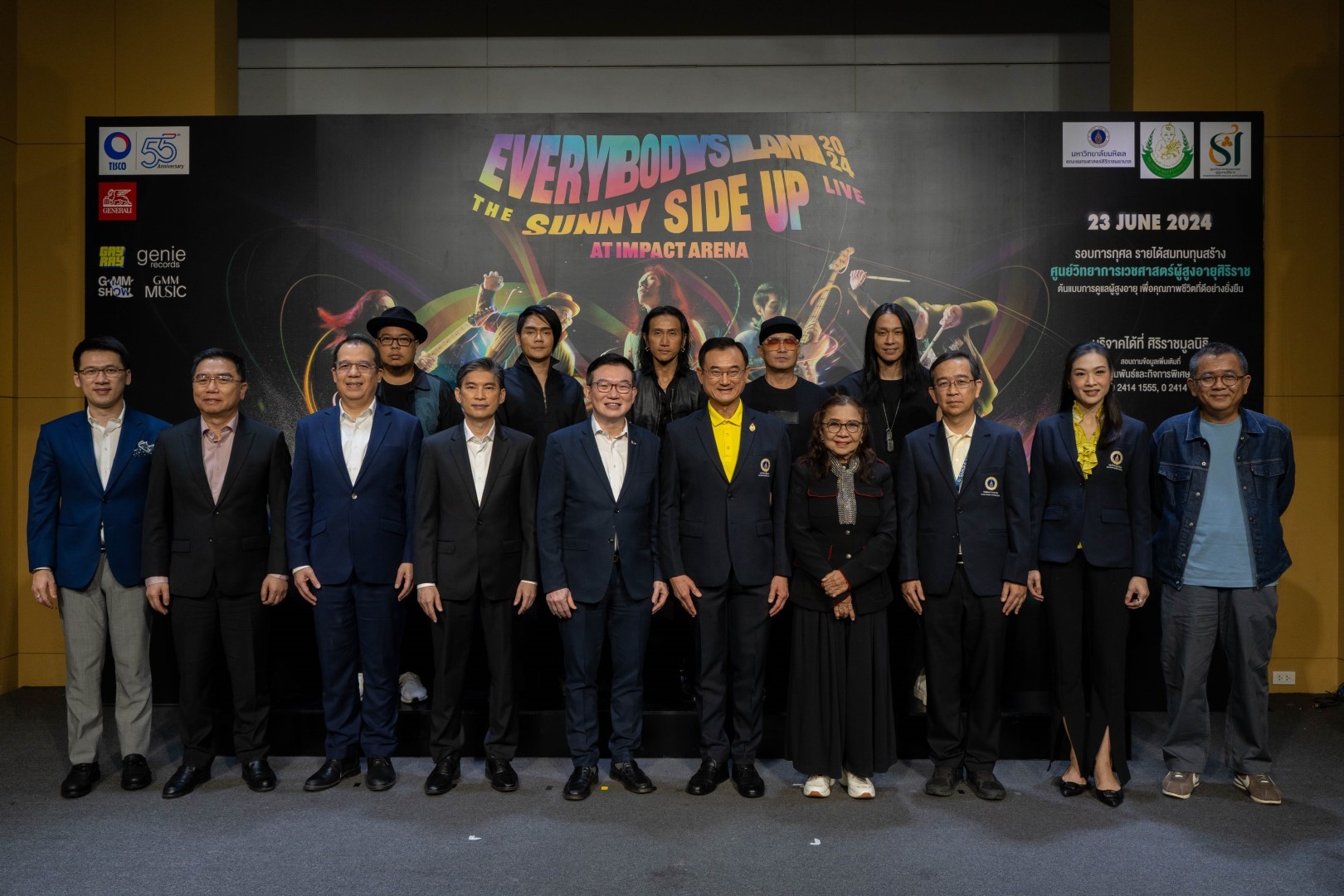 กลุ่มทิสโก้ นำโดยนายศักดิ์ชัย พีชพัฒน์ ประธานเจ้าหน้าที่บริหารกลุ่มทิสโก้ พร้อมด้วย ศ.นพ.อภิชาติ อัศวมงคลกุล คณบดีคณะแพทยศาสตร์ศิริราชพยาบาล ร่วมถ่ายภาพประชาสัมพันธ์คอนเสิร์ต “Everybodyslam 2024 The Sunny Side Up Live!” รอบการกุศล:กลุ่มทิสโก้ ร่วมกับศิริราชมูลนิธิ รอบการแสดงวันอาทิตย์ที่ 23 มิถุนายน 2567 เวลา 19.00 น. ที่อิมแพ็ค อารีน่า เมืองทองธานี จำหน่ายบัตร 3 พฤษภาคม 2567 ตั้งแต่ 10.00 น. เป็นต้นไปที่ The Concert Application หรือ www.theconcert.com รายได้ทั้งหมดจากการขายบัตร มอบให้ศิริราชมูลนิธิโดยไม่หักค่าใช้จ่าย เพื่อนำไปสมทบทุนสร้าง “ศูนย์วิทยาการเวชศาสตร์ผู้สูงอายุ ศิริราช” จ.สมุทรสาคร ซึ่งเป็นต้นแบบของศูนย์ที่ดูแลผู้สูงอายุระยะกลางที่พ้นระยะเจ็บป่วยเฉียบพลัน และสอนให้ผู้ดูแลมีความรู้ ความสามารถนำไปดูแลผู้สูงอายุต่อที่บ้านได้และป้องกันไม่ให้กลับมาเจ็บป่วยซ้ำต่อไป