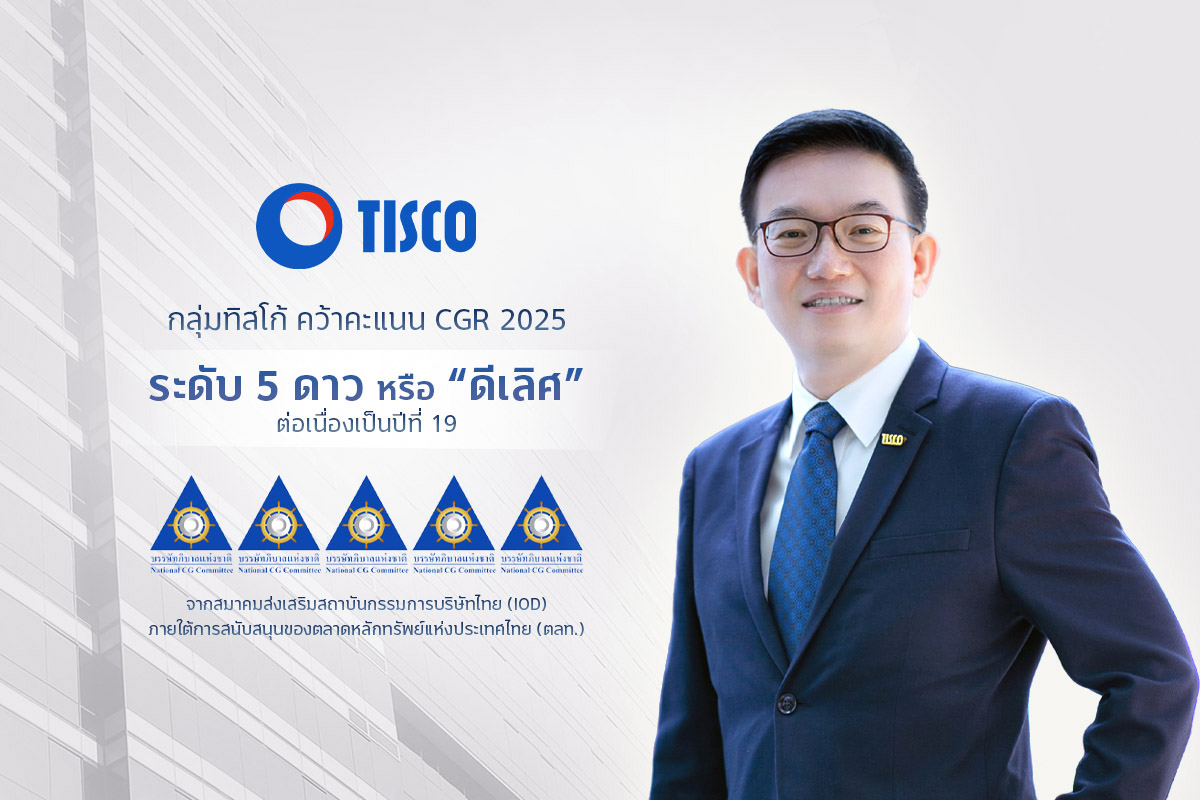 บริษัท ทิสโก้ไฟแนนเชียลกรุ๊ป จำกัด (มหาชน) หรือ กลุ่มทิสโก้ ได้รับการประเมินคะแนนการกำกับดูแลกิจการบริษัทจดทะเบียน (Corporate Governance Report: CGR) ประจำปี 2568 ในระดับ “ดีเลิศ” (Excellent CG Scoring) หรือ 5 ดาว ซึ่งเป็นระดับสูงสุดต่อเนื่องเป็นปีที่ 19 จากสมาคมส่งเสริมสถาบันกรรมการบริษัทไทย (IOD) ภายใต้การสนับสนุนของตลาดหลักทรัพย์แห่งประเทศไทย (ตลท.) และสำนักงานคณะกรรมการกำกับหลักทรัพย์และตลาดหลักทรัพย์ (ก.ล.ต.)