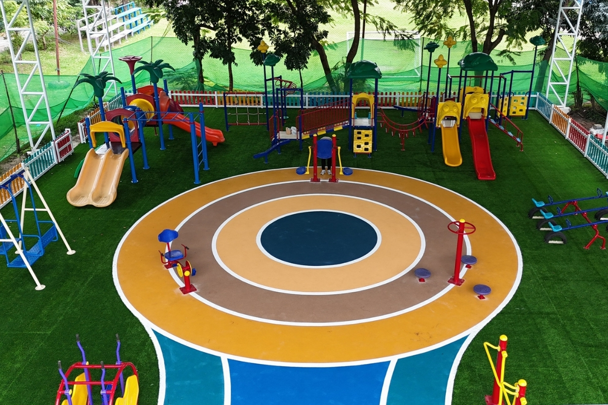 ด้าน ดร.ปัญจพัฒน์ ถิระธำรงวีร์ เผยถึงแนวคิดการออกแบบว่า “เราเลือกใช้สีคู่ตรงข้ามเพื่อสร้างความชัดเจนต่อการเรียนรู้และการแบ่งพื้นที่ฟังก์ชัน โดยมีการแบ่งสีโทนร้อน-เย็น และการผสมสีเพื่อให้กลุ่มออทิสติกและดาวน์ซินโดรมสามารถเล่นร่วมกันได้ เราเน้นสีโทนร้อนที่เครื่องเล่นเพื่อกระตุ้นให้เกิดปฏิสัมพันธ์ของเด็กกลุ่มดาวน์ซินโดรมและกลุ่มสีโทนเย็นสำหรับเด็กออทิสติก พร้อมทั้งเพิ่มสีเขียวเพื่อดึงดูดให้ทั้งสองกลุ่มเข้ามาใช้งานร่วมกัน ทุกขั้นตอนเน้นการใช้วัสดุที่เป็นมิตรต่อสุขภาพและสิ่งแวดล้อม เพื่อความปลอดภัยสูงสุดของน้องๆ ทุกคน”