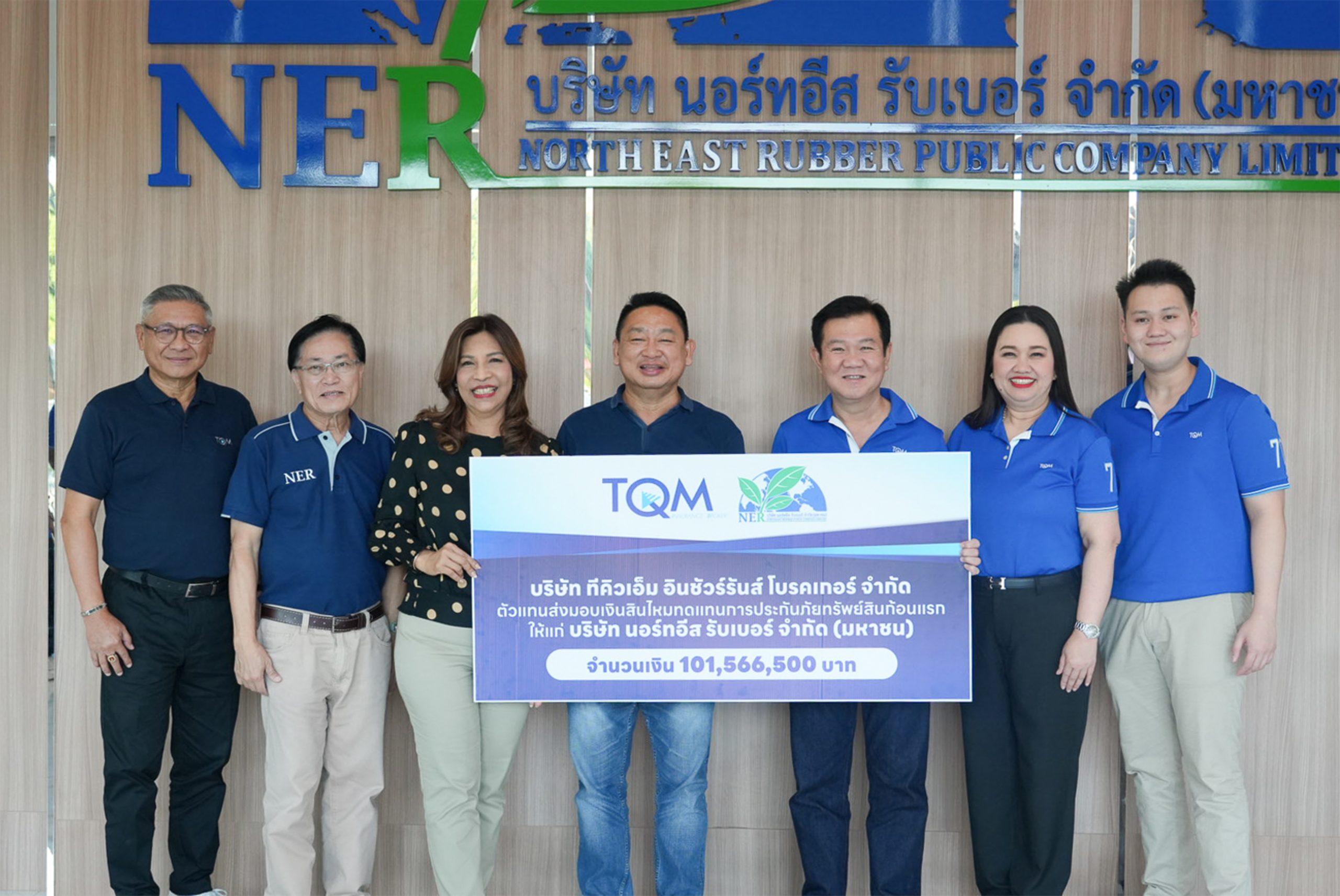 บริษัท ทีคิวเอ็ม อินชัวร์รันส์ โบรคเกอร์ จำกัด หรือ TQM ในฐานะนายหน้าประกันภัย ได้เป็นตัวแทนบริษัทประกันภัย ส่งมอบค่าสินไหมทดแทนก้อนแรก มูลค่า 101,566,500 บาท ให้แก่ บริษัท นอร์ทอีส รับเบอร์ จำกัด (มหาชน) จากกรณีเหตุเพลิงไหม้โกดังเก็บสินค้าเหตุเกิดในวันที่ 20 กรกฎาคม 2568