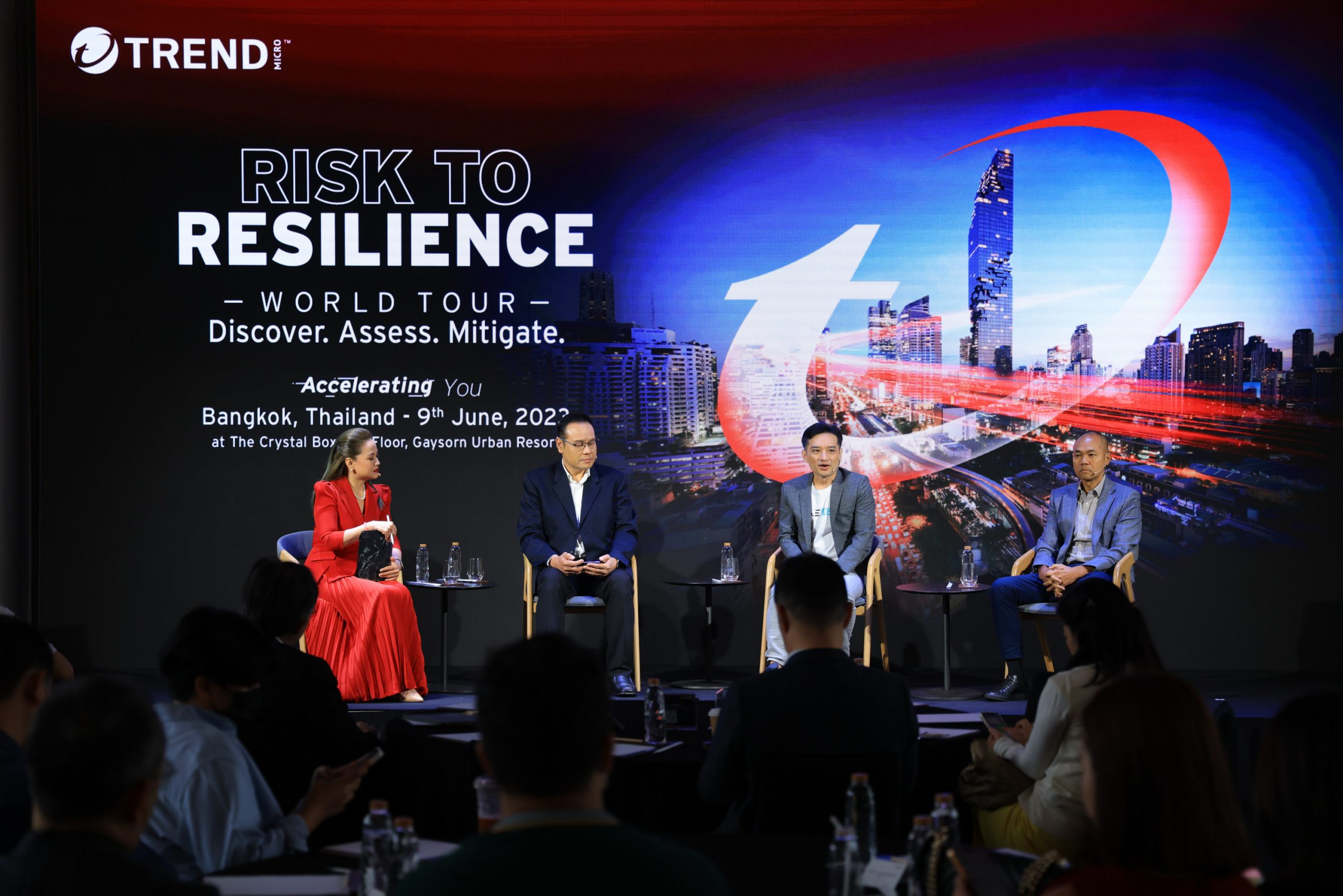 ภายในงาน Trend Micro Risk to Resilience World Tour ที่ผ่านมาได้มีการจัด Panel Discussion: RISK TO RESILIENCE : Discover. Assess. Mitigate. เชิญ 3 ผู้เชี่ยวชาญจาก 3 หน่วยงาน ได้แก่ คุณชัชวัฒน์ อัศวรักวงศ์ กรรมการผู้จัดการ และประธานเจ้าหน้าที่บริหารด้านความมั่นคงปลอดภัยเทคโนโลยีสารสนเทศ (CISO) กสิกร บิซิเนส-เทคโนโลยี กรุ๊ป (KBTG) คุณอนุชิต ชื่นชมภู รองกรรมการผู้จัดการใหญ่ ด้านธุรกิจบริการดิจิทัล สายงานธุรกิจบริการดิจิทัล บริษัท ไปรษณีย์ไทย จำกัด และ พ.ต.อ.กฤษณะ พัฒนเจริญ โฆษก กองบัญชาการตำรวจสืบสวนสอบสวนอาชญากรรมทางเทคโนโลยี (บช.สอท.)