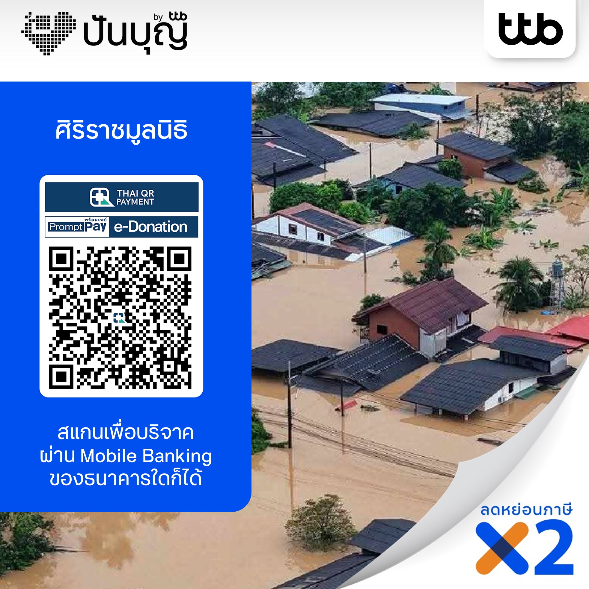 ทีทีบี ขอเชิญชวนคนไทยร่วมส่งต่อกำลังใจและความช่วยเหลืออย่างเร่งด่วน ผ่านการบริจาคเงินออนไลน์บนเว็บไซต์ “ปันบุญ” (punboon.org) เพื่อสนับสนุนมูลนิธิและองค์กรสาธารณกุศล ที่อยู่ในพื้นที่และลงพื้นที่ช่วยเหลือผู้ประสบภัยโดยตรง อาทิ สภากาชาดไทย มูลนิธิป่อเต็กตึ๊ง ศิริราชมูลนิธิ มูลนิธิ ซี.ซี.เอฟ. เพื่อเด็กและเยาวชน (CCF) มูลนิธิกองทุนเพื่อสิ่งแวดล้อมไทย มูลนิธิโคเออร์ รวมถึงองค์กรภาคประชาสังคมในภาคใต้ ที่เปิดรับการสนับสนุนผ่านระบบปันบุญ โดยสามารถร่วมบริจาคได้ที่ www.punboon.org เลือกหมวดหมู่ “ช่วยเหลือผู้ประสบอุทกภัย”