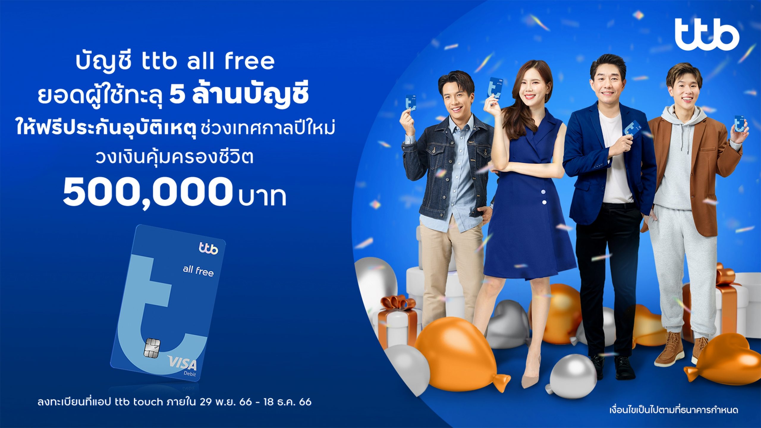 บัญชี ttb all free ยอดผู้ใช้ทะลุ 5 ล้านบัญชี ให้ฟรีประกันอุบัติเหตุช่วงเทศกาลปีใหม่